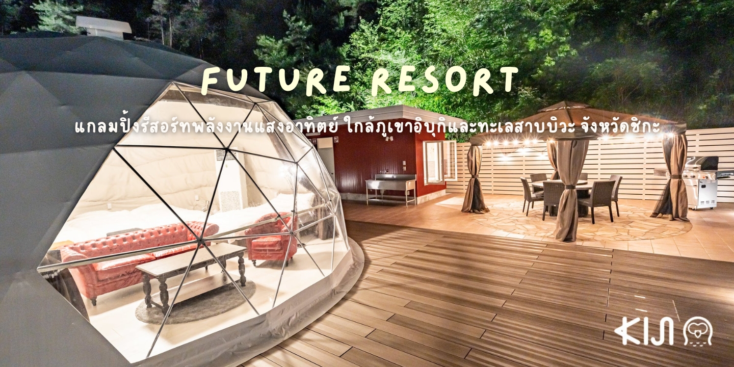 ใกล้จะเข้าฤดูร้อนของประเทศญี่ปุ่นแล้ว อีกหนึ่งกิจกรรมยอดฮิตเลยก็คือแกลมปิ้งนั่นเอง วันนี้เราจึงอยากแนะนำ ฟิวเจอร์รีสอร์ท (Future Resort) แกลมปิ้งรีสอร์ทท่ามกลางธรรมชาติ ตั้งอยู่ที่เมืองนากาฮามะ (Nagahama) จังหวัดชิกะ รีสอร์ทแห่งนี้มีจุดเด่นที่น่าสนใจมากนั่นก็คือ มีการติดตั้งอุปกรณ์ผลิตไฟฟ้าจากแสงแดด ทำให้พลังงานที่ใช้หมุนเวียนภายในรีสอร์ทนั้นมาจากธรรมชาติทั้งหมด นอกจากจะเป็นมิตรต่อสิ่งแวดล้อมแล้ว ยังมีห้องพักดีไซน์ที่เป็นเอกลักษณ์หลายรูปแบบ บอกเลยว่าเป็นอีกตัวเลือกหนึ่งที่น่าสนใจสำหรับคนที่กำลังมองหาที่พักสวยๆ และล้อมรอบไปด้วยธรรมชาติสีเขียวในช่วงหน้าร้อนนี้