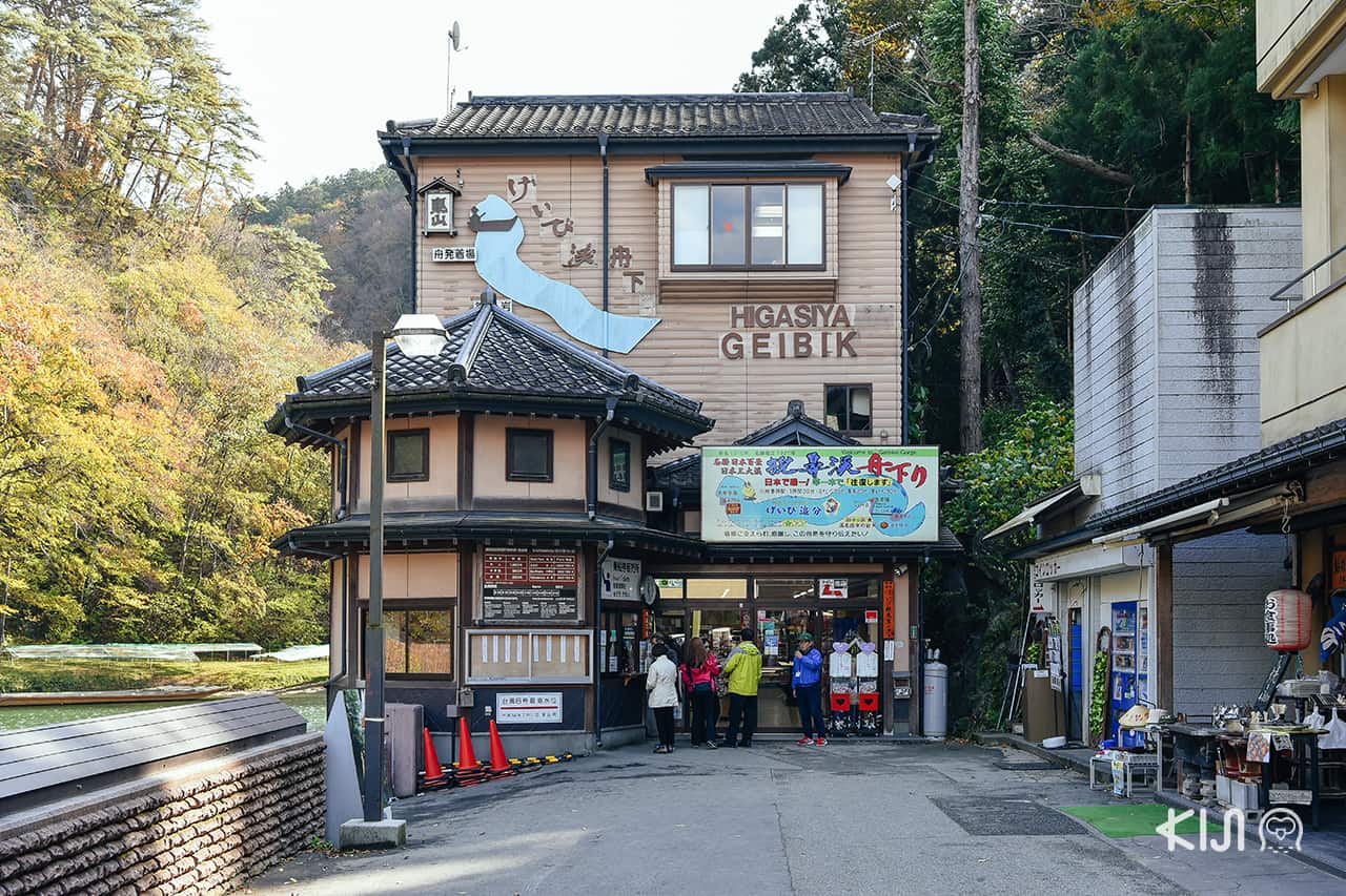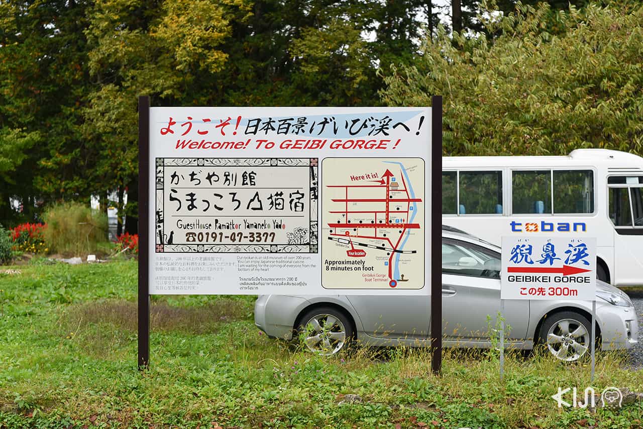อันที่จริงรูทนี้เราไปเที่ยวเมืองเซนได จังหวัดมิยากิมาก่อน แล้วค่อยแวะมาที่นี่โดยรถไฟจะใช้เวลาประมาณ 1 ชั่วโมง มาลงที่สถานีเกบิเค (Geibikei Station) ใครที่คิดหวังว่าจะลากกระเป๋าเดินทางใบโตมาด้วย ขอให้ยกเลิกความคิดนั้นไปได้เลย เพราะเกบิเคเป็นสถานีขนาดเล็กมาก ตั้งอยู่บนเนินเขาและไม่มีลิฟท์ให้บริการ เมื่อมาถึงแล้วยังต้องเดินลงบันไดซี่เล็กชันไปยังถนนอีก ถ้าหากพกเพียงกล้องมาบันทึกภาพก็สบายใจ เดินตัวปลิวได้เลย