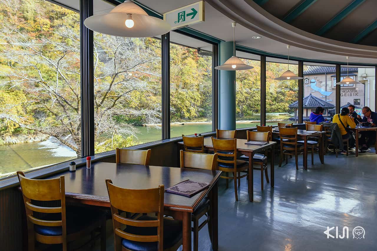 จากสถานีเกบิเคให้เดินตามป้ายบอกทางมาเรื่อยๆ ราว 500 เมตรก็จะถึงจุดจำหน่ายตั๋วสำหรับล่องเรือ บริเวณเดียวกันนี้ยังมีร้านขายของฝากและร้านอาหารด้วย ตั๋วพร้อมคนพร้อมก็ลุยกันเลย!
