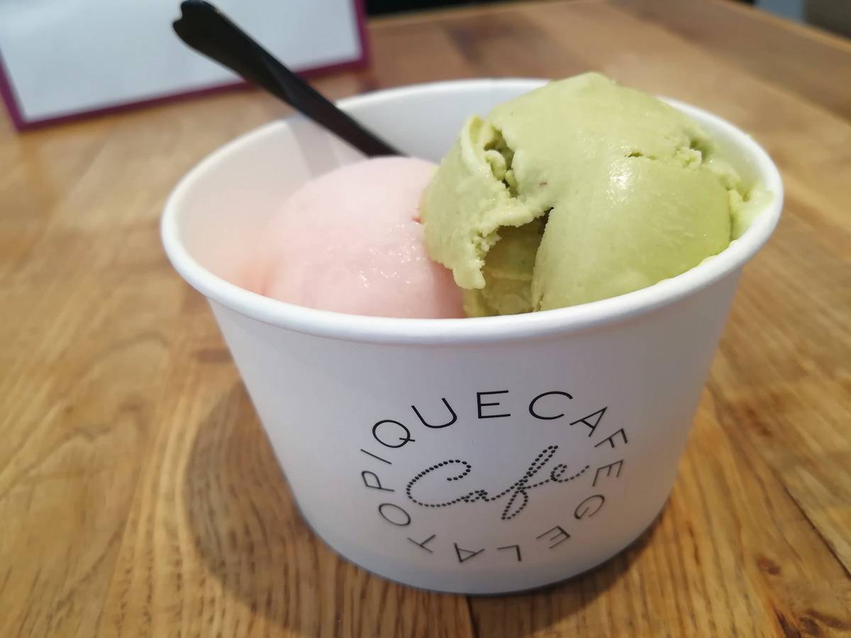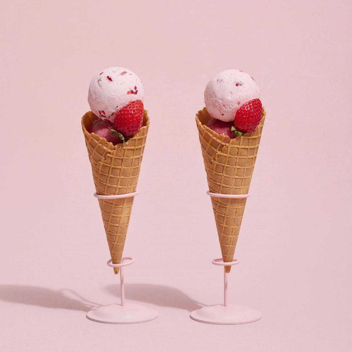 ถ้าชื่นชอบขนมเย็นๆ ขอแนะนำเป็นไอศกรีมโคน 2 ก้อน โดยก้อนล่างจะเป็นไอศกรีมเชอร์เบทรสสตรอว์เบอร์รีที่ได้รสชาติของสตรอว์เบอร์รีสายพันธุ์อามะโอแบบเต็มปากเต็มคำ ส่วนไอศกรีมก้อนบนเป็นไอศกรีมเจลาโต้ ที่นำสตรอว์เบอร์รีมาผสมกับนมหรือครีม ทำให้ได้รสชาติที่กลมกล่อมและนุ่มนวล เรียกได้ว่าซื้อแค่โคนเดียวก็สามารถเพลิดเพลินไปกับไอศกรีมทั้งสองรสชาติได้ในเวลาเดียวกัน
