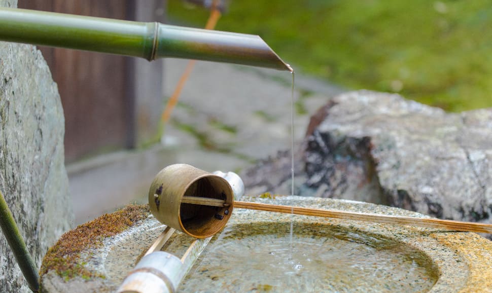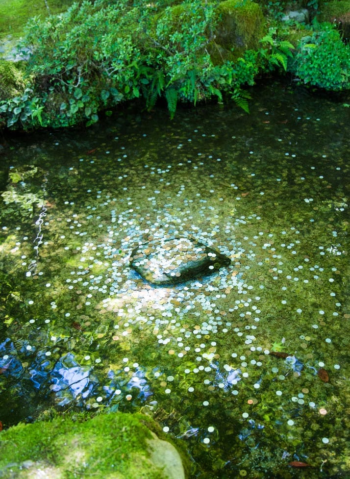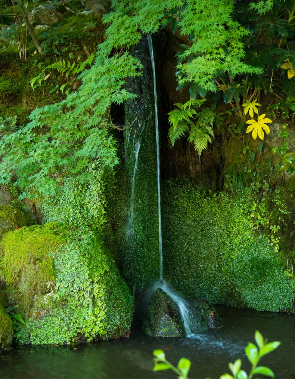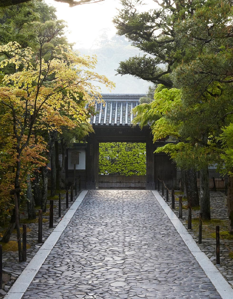 กินคะคุจิต่างจากคินคะคุจิในแง่การออกแบบสวน การจัดลำดับในการเข้าชมวัดอย่างมาก วัดนี้เป็นวัดในนิกายเซน แน่นอนว่าส่วนที่เด่นของภูมิทัศน์วัดเซนคือสวนแห้ง แต่การเข้าชมสวนแห้งที่นี่มีความโดดเด่นกว่าวัดอื่นในเกียวโตคือลำดับการเข้าถึงส่วนต่างๆ ในสายตาของผมที่เป็นสถาปนิก มันมีลำดับการเข้าชมแต่ละส่วนอย่างมีชั้นเชิง เมื่อเข้ามาถึงหน้าวัดจวบจนผ่านซุ้มขายตั๋ว จะพบกับซุ้มไม้พุ่มสูงราวกับบ้าน 2 ชั้น มันทำหน้าที่อำพรางเรื่องราวด้านหลังให้ชวนสงสัยว่าภายในวัดจะเป็นเช่นไร การคาดเดาไม่ได้ ความรู้สึกแปลกใจมีเสน่ห์เสมอในการเดินทาง