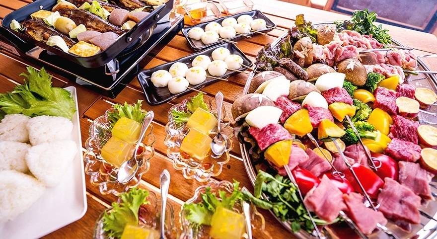 เสน่ห์อีกอย่างเลยก็คืออาหารสุดพรีเมียมที่ใช้วัตถุดิบชั้นดีจากจังหวัดโทคุชิมะ แนะนำให้จองแพ็คเกจบาร์บีคิวสำหรับมื้อค่ำไว้ด้วย ในแพ็คเกจนี้จะได้รับวัตถุดิบสำหรับปิ้งบาร์บีคิวที่ผ่านการคัดสรรมาอย่างดี นอกจากนี้ยังจะได้ลิ้มรสเนื้อวากิวของวัวพันธุ์ญี่ปุ่นขนดำ มีจุดเด่นคือเนื้อลายหินอ่อนที่มีความสมดุลระหว่างเนื้อสีแดงกับไขมัน ได้เนื้อสัมผัสที่มีความเหนียวนุ่มและละลายในปาก