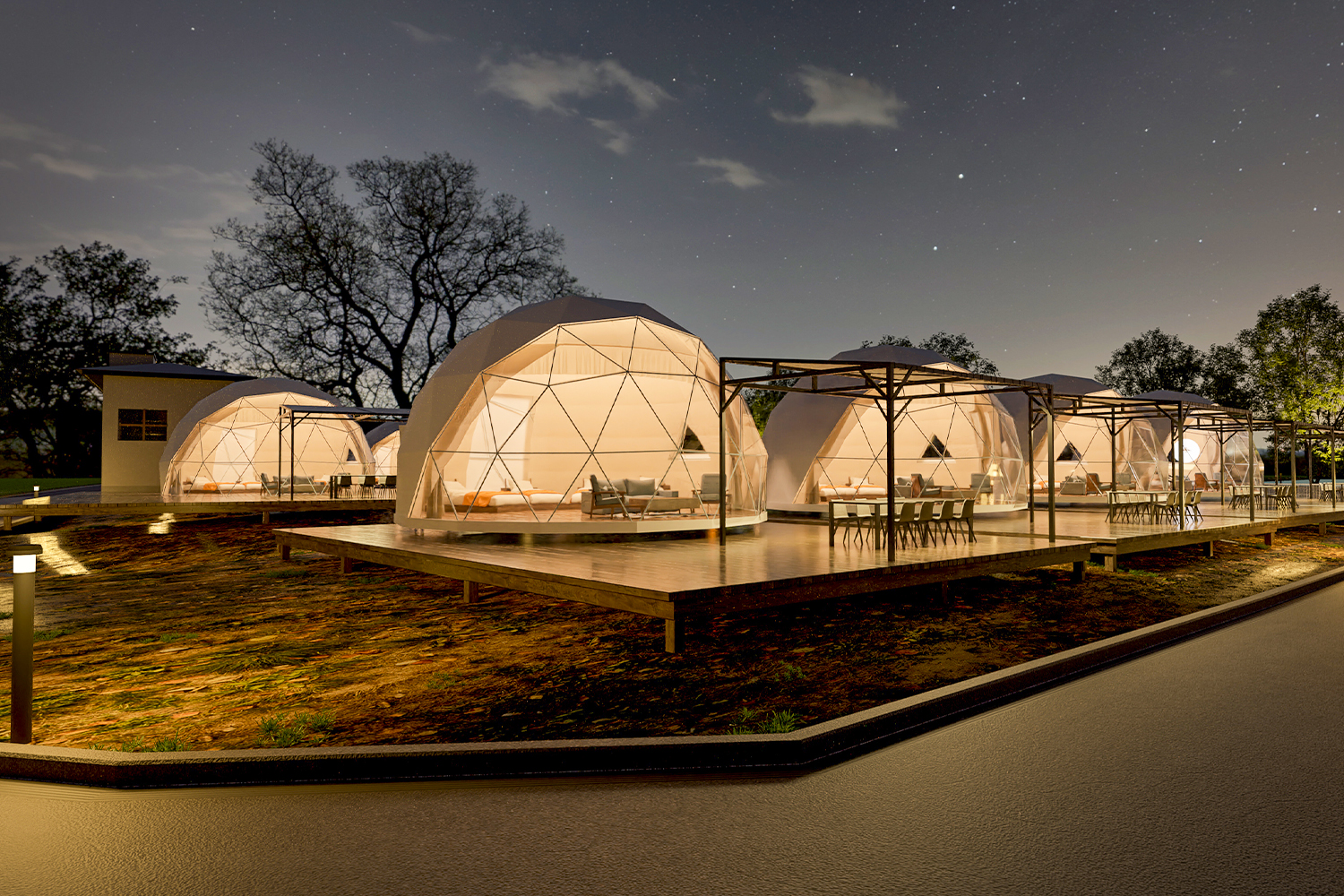 ห้องพักแบบแรกเป็นเต็นท์โดมสูง 7 เมตร มีพื้นที่ห้องนั่งเล่นกว้างขวาง เหมาะกับคู่รัก หรือครอบครัวที่มีเด็กเล็กๆ สามารถเข้าพักได้สูงสุดถึง 6 คน มีทั้งหมด 4 ห้องซึ่งอยู่ใกล้กับทะเลมากที่สุด