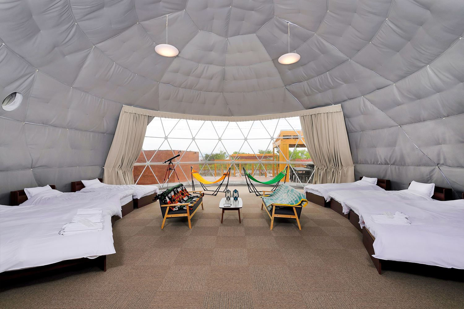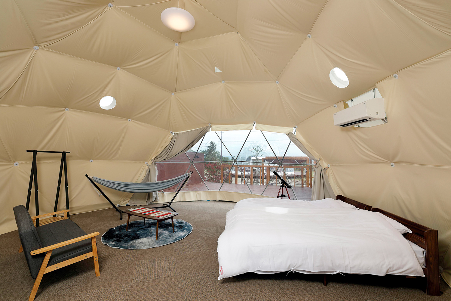 และสุดท้าย เต็นท์โดมสูง 10 เมตร ซึ่งเป็นห้องพักที่มีขนาดใหญ่ที่สุด เหมาะกับครอบครัวที่มีผู้สูงอายุ นักท่องเที่ยวกลุ่มใหญ่ หรือมาพักผ่อนแบบแก๊งเพื่อน มีจำนวน 2 ห้อง สามารถเข้าพักได้พร้อมกัน 8-10 คนเลยทีเดียว