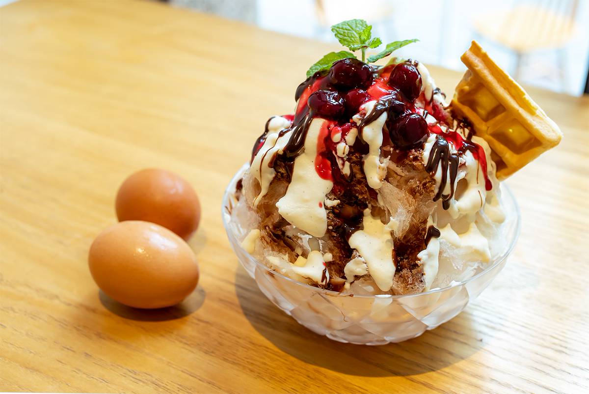 เมนูต่อไปที่น่าลองคือ น้ำแข็งไสรสพาร์เฟต์คัสตาร์ดจากไข่ไก่ธรรมชาติ (990 เยน) คัสตาร์ดซอสที่ทำจากไข่ไก่จากแม่ไก่ที่ถูกเลี้ยงแบบปล่อยตามธรรมชาติ เนื่องจากทางร้านได้เล็งเห็นความสำคัญเกี่ยวกับความเป็นอยู่ที่ดีของสัตว์ด้วยนั่นเอง สำหรับท็อปปิ้งจะเป็นเบอร์รี่ซอสที่ผสมระหว่างสตรอว์เบอร์รีและราสป์เบอร์รี่ ตามด้วยช็อคโกแลตซอส แครนเบอร์รี่ และผลแบล็คเคอร์แรนท์ ปิดท้ายด้วยวาฟเฟิลที่ทำมาจากแป้งสาลีผลิตในญี่ปุ่นและไข่ไก่จากธรรมชาติ