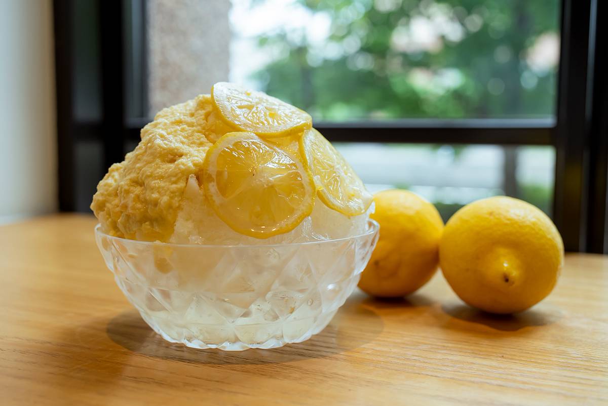 ต่อมาคือ น้ำแข็งไสรสน้ำผึ้งมะนาว (770 เยน) เป็นน้ำแข็งไสที่จะใช้เลมอนออร์แกนิคทั้งส่วนที่เป็นน้ำเลมอนและส่วนที่เป็นเปลือก ทำให้สัมผัสได้ถึงรสหวานและขมเล็กน้อยจากน้ำแข็งไส ด้านหนึ่งราดด้วยไซรัปที่ทำมาจากเลมอนและน้ำผึ้ง ส่วนอีกด้านราดด้วยเลมอนเคิร์ด (Lemon Curd) หรือแยมเลมอน ที่ทำมาจากเลมอน ผิวเลมอน และเนยแข็ง ประดับตกแต่งน่ารักๆ ด้วยเลมอนฝานเป็นแว่น 2-3 ชิ้น