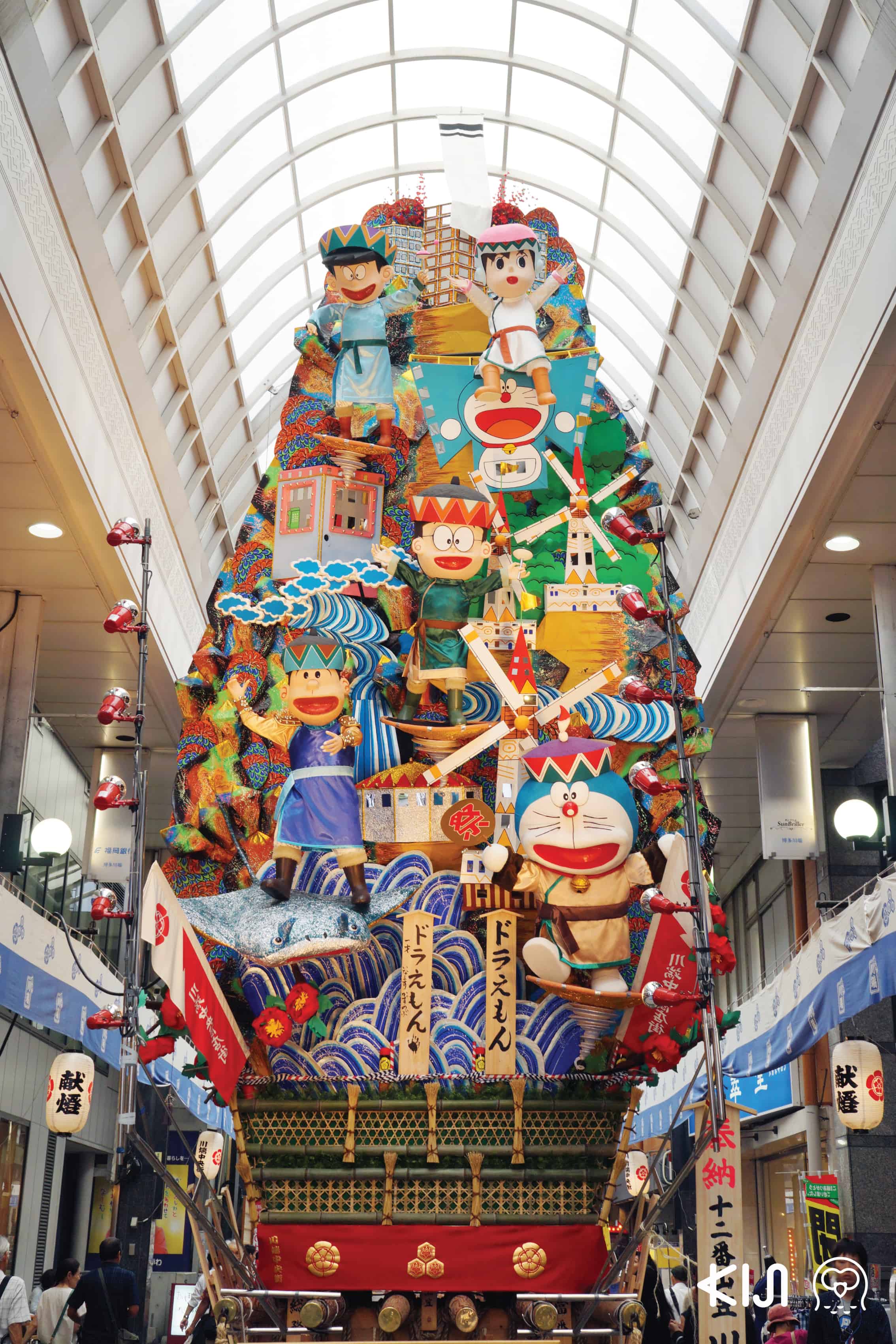 นอกจากการแข่งขันกัน เทศกาลนี้ยังมีความน่าสนใจอยู่ที่เรื่องการออกแบบแท่นแห่ประเภทสวยงามคือรู้สึกตื่นตาตื่นใจมาก เพราะขนาดของแท่นแห่นั้นทั้งใหญ่แล้วก็สูง การออกแบบชิ้นงานที่มีน้ำหนักเป็นตันๆ และมีส่วนสูงเป็น 10 เมตร ไม่ใช่เรื่องเล็กๆ เลยนะ (แต่ถ้าเป็นแท่นสำหรับแข่งจะเตี้ยกว่าพอสมควร) สิ่งที่ชอบมากก็คือแท่นแห่ที่จัดแสดงไว้ตามตัวเมือง บางจุดจะถูกประดับด้วยตัวการ์ตูน ซึ่งการได้เห็นโดราเอมอนโนบิตะ ชิสุกะ ขึ้นไปโลดแล่นอยู่บนแท่นแห่ที่มีประวัติศาสตร์ตั้งต้นเมื่อ 700 กว่าปีที่แล้วอย่างลงตัว เป็นเรื่องน่าดีใจ