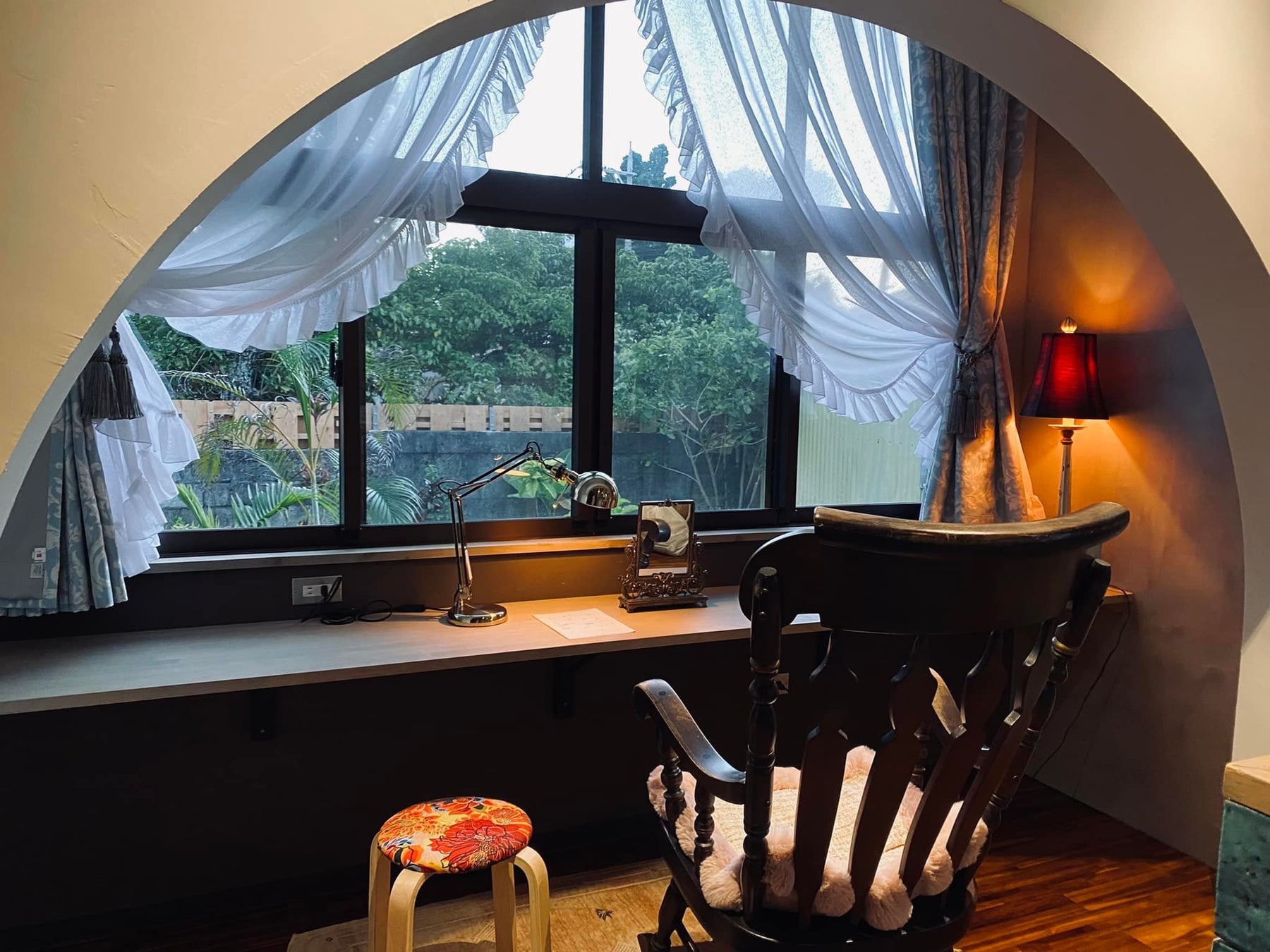 ส่วนใครที่ต้องการสมาธิในการทำงาน หรือจะอ่านหนังสือ ก็มีมุมโต๊ะสำหรับการนั่งทำงานให้เช่นกัน มุมนี้ก็จะตกแต่งออกมาในสไตล์วินเทจ ในขณะเดียวกันก็ให้ทั้งความคลาสสิกและหรูหรา หน้าต่างบานใหญ่ที่มองเห็นธรรมชาติด้านนอกที่เต็มไปด้วยต้นไม้เขียวขจี เรียกได้ว่าเป็นมุมที่เหมาะกับการทำงานและพักสายตาเป็นอย่างมาก นอกจากนี้ยังมุมดีๆ ที่เหมาะแก่การใช้เป็นที่นั่งอ่านหนังสืออีกมากมาย