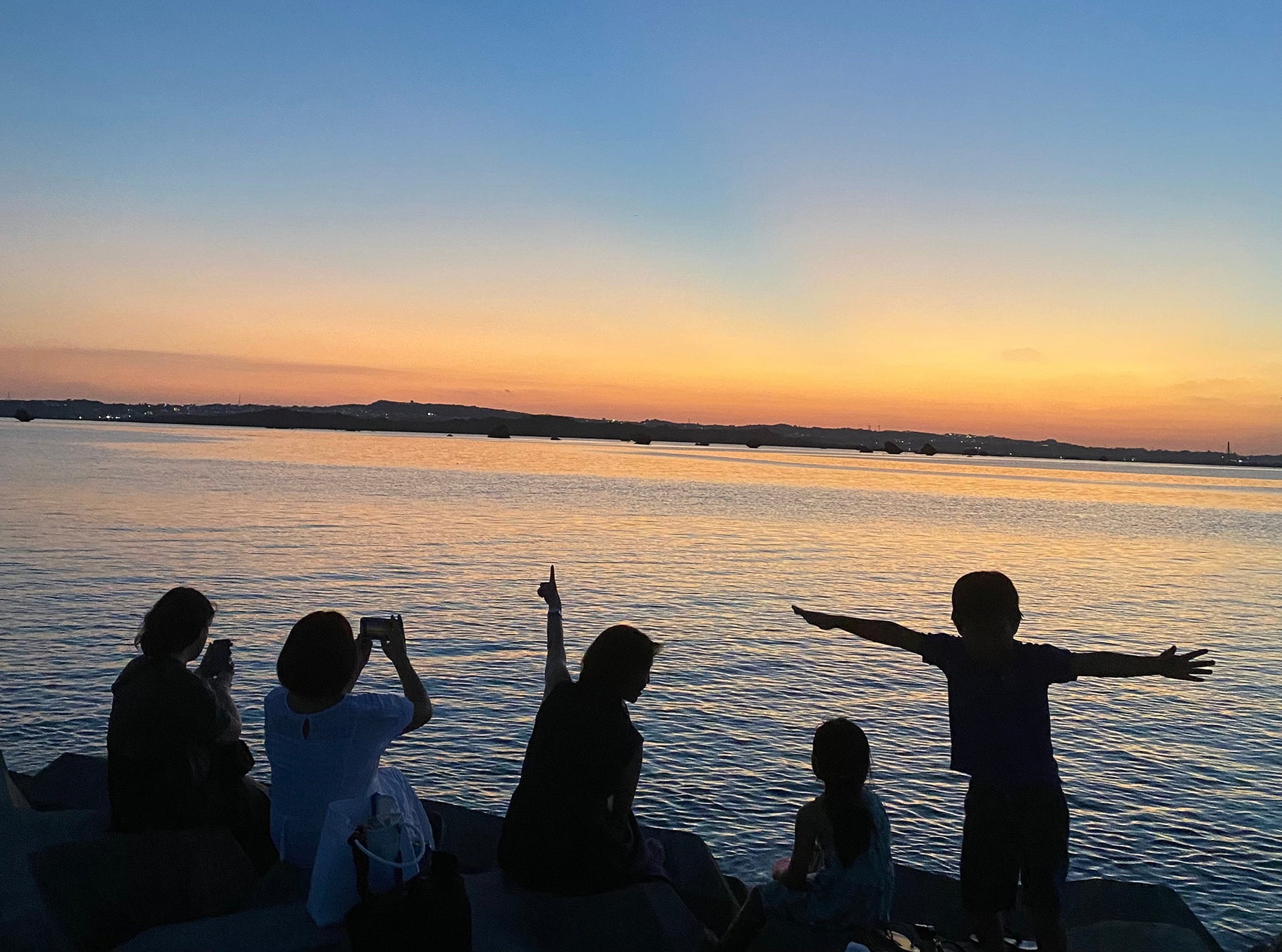 ในตอนค่ำหากไปเดินเล่นที่ริมทะเลพร้อมกับจิบเครื่องดื่มเย็นๆ สักหน่อยก็จะพบกับจุดชมพระอาทิตย์ตกที่มีชื่อเสียงที่สุดของโอกินาว่า หากอากาศดี ทะเลและท้องฟ้าจะเปลี่ยนเป็นสีแดงสด และรายล้อมไปด้วยทิวทัศน์ที่สวยงามตระการตา ถ้าใครที่อยากสัมผัสกลิ่นอายของเกาะศักดิ์สิทธิ์และบรรยากาศที่เงียบสงบแห่งนี้ ต้องลองมาค้นหากันในพื้นที่อันแสนลึกลับนี้ด้วยตัวเอง