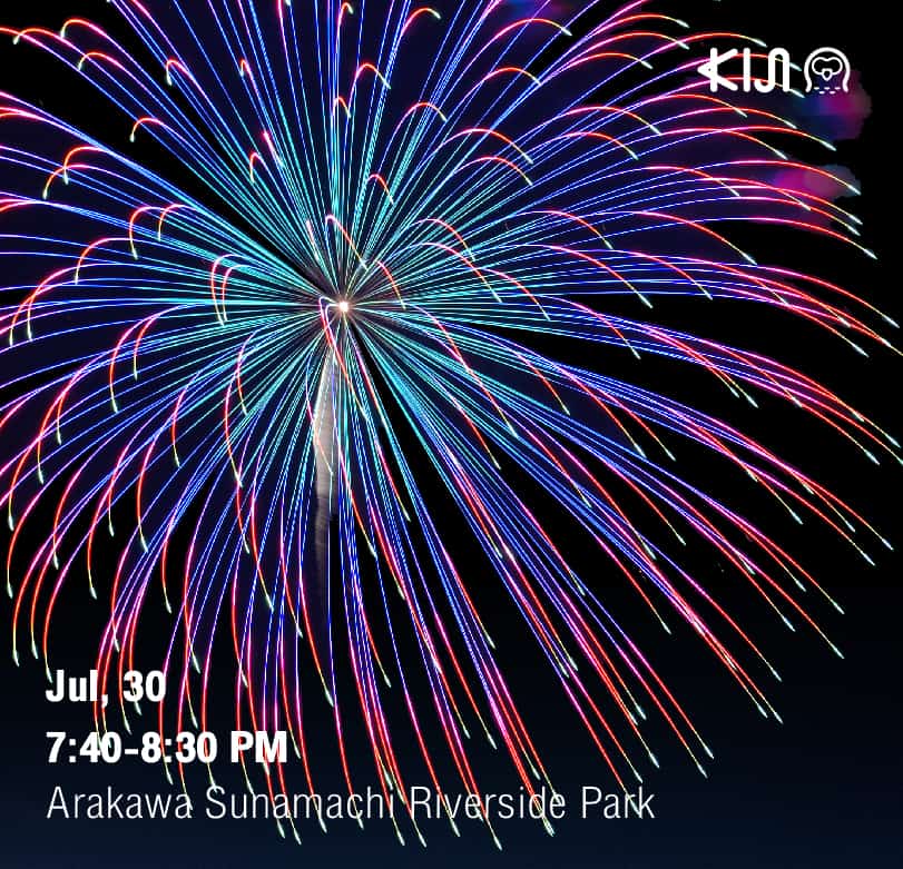 เป็นอีกหนึ่งสถานที่ชม ดอกไม้ไฟในโตเกียว ที่เราอยากแนะนำ โดยปกติจะจัดขึ้นในวันธรรมดา จึงทำให้คนไม่เยอะ ซึ่งถือเป็นข้อดีที่เราไม่ต้องไปเบียดคนจำนวนมาก แม้ที่สวนสาธารณะริมน้ำแห่งนี้อาจมีการจุดดอกไม้ไฟไม่มาก เพียง 4,000 ดอก แต่เมื่อรวมกับบรรยากาศโดยรอบและการได้ชมแบบใกล้ชิดแล้วมันช่างเข้ากันดีไปหมด