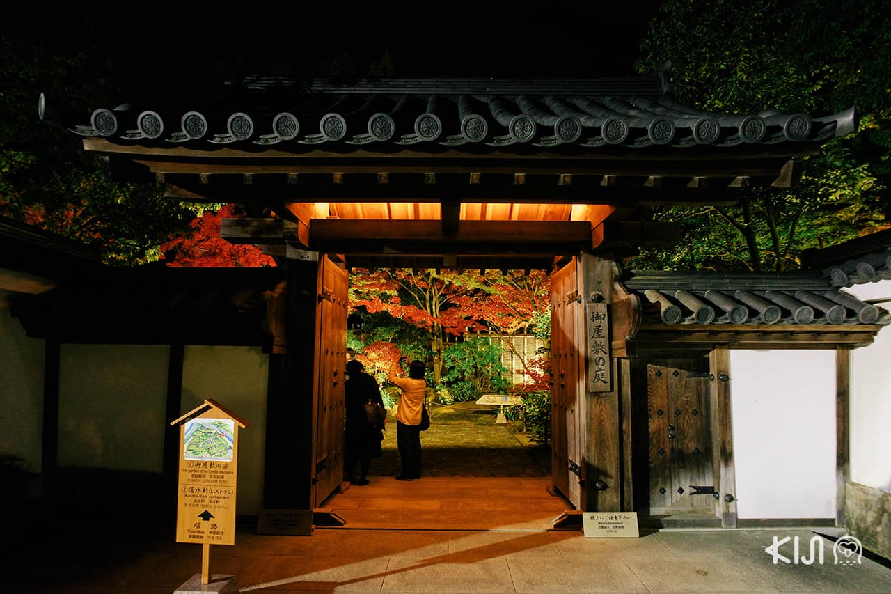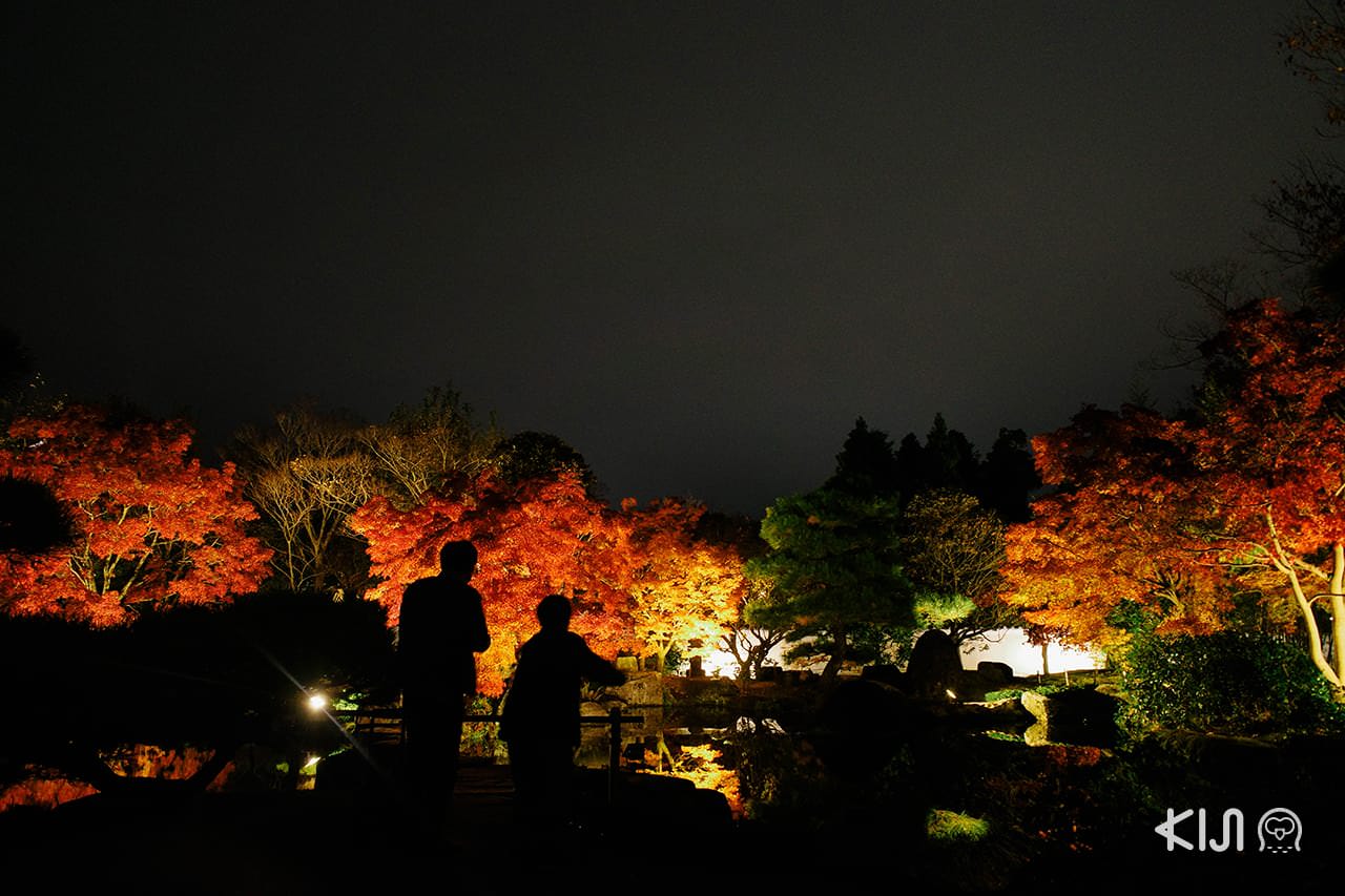 สวนสไตล์ญี่ปุ่นดั้งเดิมที่ตั้งอยู่ไม่ไกลกับปราสาท ฮิเมจิ ยามกลางคืนมีไลท์อัพในฤดูใบไม้ร่วง
