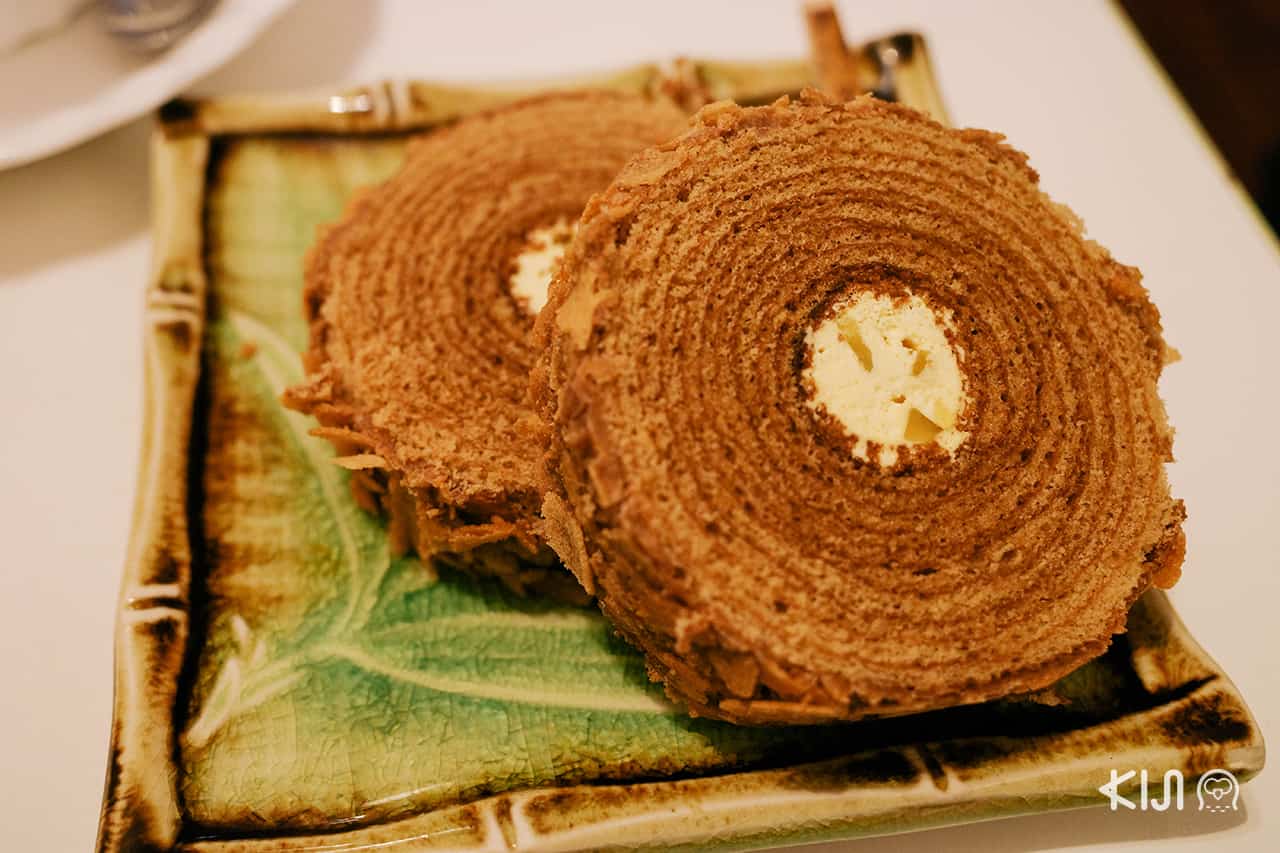 เติมพลังตอนเช้ากันด้วยชุดอาหารเช้าสไตล์ตะวันตก ทั้งขนมปังปิ้งเนยอัลมอนด์ ไข่ต้ม สลัด ผลไม้ และปิดท้ายด้วยกาแฟหนึ่งแก้ว ยังมีขนมเค้กบามคูเฮน (เค้กขอนไม้) แบรนด์ Sennensugi ด้านในมีวงเหมือนลายไม้ ด้านนอกเป็นเนื้อช็อกโกแลตโรยด้วยเกล็ดอัลมอนด์ดูแล้วคล้ายเปลือกไม้จริงๆ