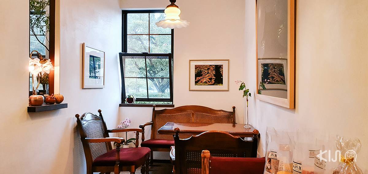 อีกหนึ่งคาเฟ่ที่แสนน่ารักแห่งนี้อยู่ใกล้ๆ กับปราสาทฮิโรซากิเช่นกัน เพียงแค่ก้าวเข้าไปในร้านก็จะได้กลิ่นหอมกาแฟอบอวลไปทั่ว ผนังด้านหลังมาสเตอร์ผู้เชี่ยวชาญการดริปมีแก้วกาแฟสวยๆ เรียงรายเต็มไปหมด คอกาแฟมาที่นี่ห้ามพลาดเลย ส่วนชาเลิฟเวอร์ต้องลองรอยัลมิลค์ทีนะ โดยส่วนตัวชอบแอปเปิ้ลพายร้านนี้มาก เพราะหวานน้อยกำลังดี แถมราคาน่ารักมาก 400 เยนเท่านั้น นอกจากแอปเปิ้ลพาย ยังมีเค้กอีกสารพัดชนิดซึ่งเราเชื่อว่าน่าจะอร่อยไม่แพ้กัน ใครชอบงานคราฟต์ ของทำมือ ที่ร้านมีสินค้าผลงานของศิลปินท้องถิ่นวางขายด้วยล่ะ