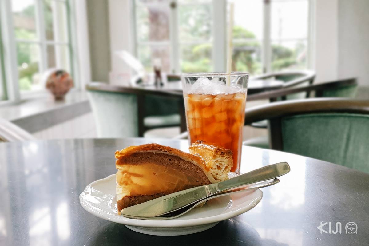ส่วนนางเอกอย่างแอปเปิ้ลพายก็ไม่น้อยหน้า แป้งกรอบหอมเนย ตัวแอปเปิ้ลด้านในชุ่มฉ่ำ สั่งมากินเป็นเซ็ตคู่ชากาแฟคือกำลังดี ถ้าไม่ชอบแป้งพายไม่เป็นไร ที่นี่มีเมนูแป้งเครปกับแอปเปิ้ลด้วย หรือจะกินของคาวต่อ ที่นี่เขามีแกงกะหรี่ใส่แอปเปิ้ลด้วยล่ะ ถ้ามีเวลาเหลือกินเสร็จแล้วลองแวะไปชมสวนญี่ปุ่นด้านในด้วยนะ สวยมากๆ
