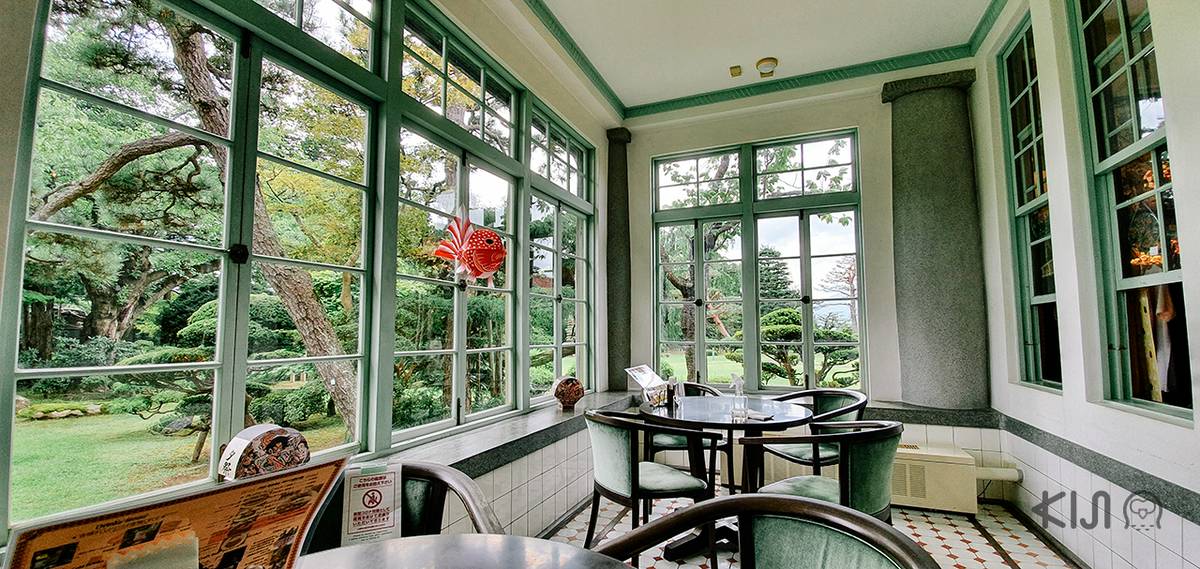 ร้านแรกที่เราเลือกมาคือ Taisho Roman Tea Room ซึ่งเป็นคาเฟ่เก๋ๆ ในอาคารสไตล์วินเทจแบบตะวันตกใน Fujita Memorial Garden ซึ่งอยู่ในละแวกเดียวกับปราสาทฮิโรซากิ ภายในร้านสวยเก๋มาก แนะนำให้นั่งโซนที่อยู่ติดสวนเป็นกระจกใสโปร่งๆ ซึ่งมีแดดอ่อนๆ ส่องเข้ามาเสริมความอร่อย สีเขียวอ่อนของอินทีเรียดูสดชื่นสบายตารับกับวิวธรรมชาติด้านนอก พนักงานบอกว่าวิวที่สวนแห่งนี้สวยทุกฤดูเลยล่ะ