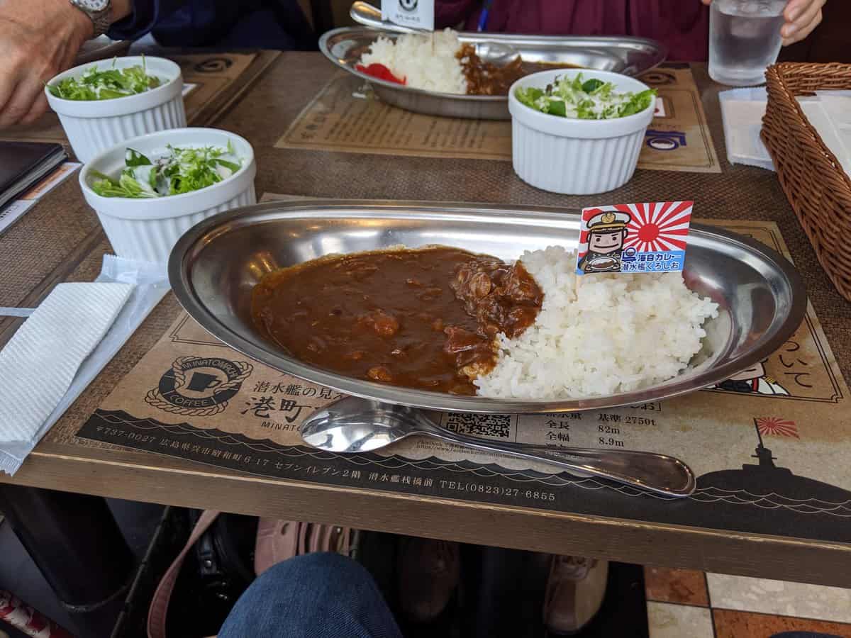 มาต่อกันที่เมนูแกงกะหรี่ที่เมืองคุเระ (Kure) ซึ่งเป็นเมืองที่มีท่าเรือนาวิกโยธินและเป็นจุดปฏิบัติการของกองกำลังป้องกันตนเองของญี่ปุ่นมาหลายยุคสมัย ส่งผลให้วัฒนธรรมการกินแกงกะหรี่คุเระไคจิของทหารเรือซึ่งแต่เดิมกินในถาดแบบหลุมๆ ได้ตกทอดมาถึงชาวบ้านในปัจจุบัน ไม่ว่าจะเดินเข้าร้านอาหารร้านใดในเมืองคุเระก็จะพบกับแกงกะหรี่เสมอ