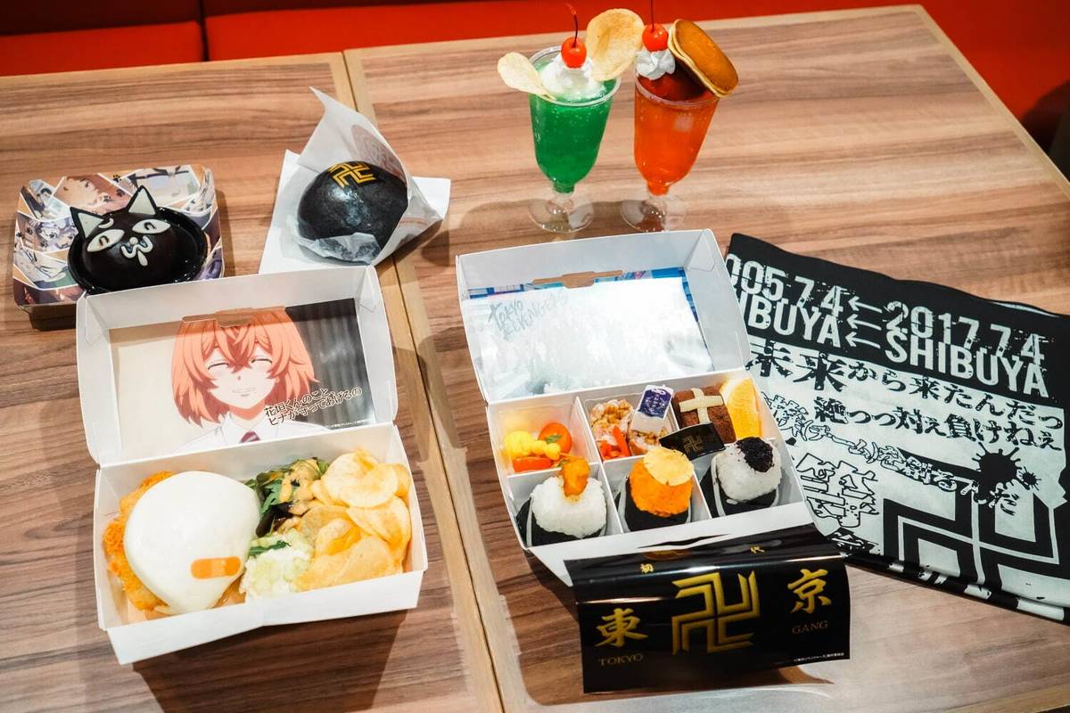 มีเมนูที่ได้แรงบันดาลใจจากเรื่องราวและตัวละคร Tokyo Revengers ที่พร้อมให้ทุกคนได้ซื้อมานั่งกินที่ร้านหรือซื้อกลับบ้านมากมาย เช่น ”Tomanji Founding Box” และ ”Takemitch’s Cream Soda”