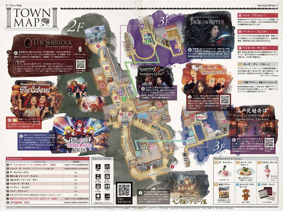 สามารถเข้าชม: Tokyo Revengers Immersive Escape, Identity V Immersive Chase, [Oshi no Ko] Immersive Rally, Spy Action!, Jack the Ripper, Party Festa!, Immersive Stories, The Cabaret