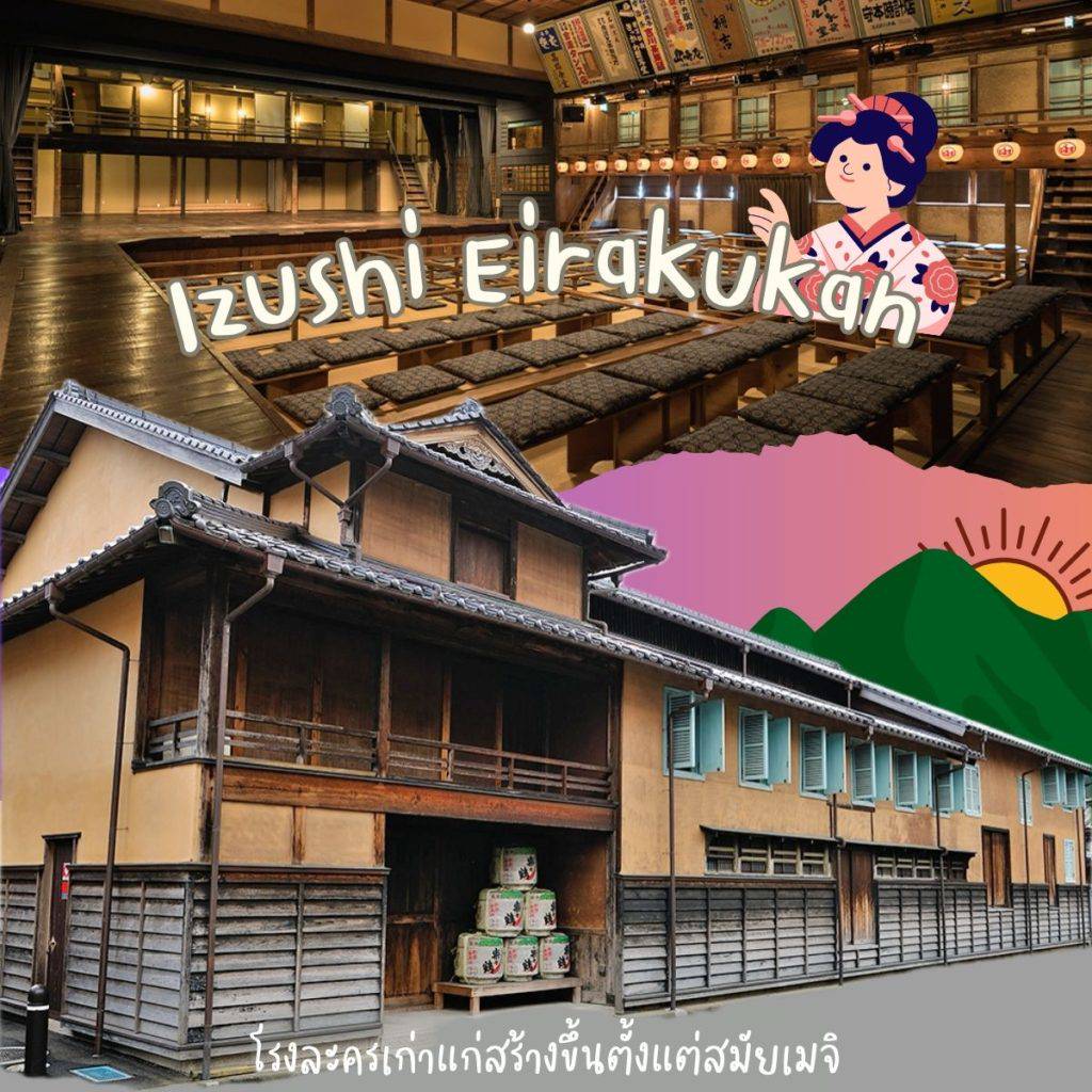 เดินเล่นเพลินๆ แวะชมโรงละครอิซุชิ เอะอิระกุคัง (Izushi Eirakukan) โรงละครแห่งนี้โครงสร้างเป็นไม้ทั้งหลัง สร้างขึ้นตั้งแต่สมัยเมจิในปี ค.ศ.1901 เก่าแก่ที่สุดในภูมิภาคคิงกิ นอกจากนี้ที่นี่มีการแสดงหลายอย่าง เช่น คาบุกิ เคียวเง็น รักคุโกะ เป็นต้น ปัจจุบันก็ยังเปิดทำการแสดงอยู่ สามารถเดินชมโรงละครได้ถึงหลังเวที รวมถึงห้องแต่งตัวนักแสดง และระบบควบคุมการแสดงที่เป็นแบบญี่ปุ่นเก่าแก่ ไม่ว่าจะเป็น ใต้ถุนเวที ทางเดินนักแสดง และลิฟต์แบบโบราณ บริเวณกลางเวที มีพื้นที่สามารถหมุนโชว์ได้ นอกจากนั้นที่นั่งของผู้ชมก็มีการไล่ระดับทำให้ผู้ชมทุกคน สามารถชมการแสดงได้อย่างชัดเจนอีกด้วย