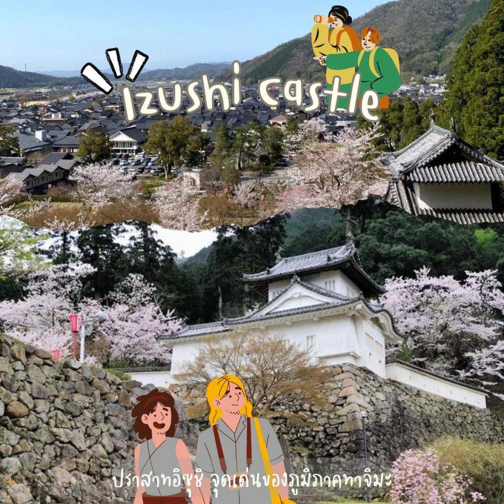 ปราสาทเก่าแก่ที่มีประวัติศาสตร์อันยาวนาน ซากปราสาทอิซุชิ (Izushi Castle Ruins) แต่เดิมปราสาทแห่งนี้มีชื่อว่า ปราสาทอะริโคะยะมะ (Arikoyama Castle) สร้างขึ้นในปี ค.ศ. 1504 ตั้งอยู่บนจุดสูงสุดของยอดเขาอะริโกะยะมะ ใช้เพื่อเป็นหอสังเกตุการณ์ข้าศึกในสมัยอดีต จากนั้นในปี ค.ศ. 1604 ปราสาทแห่งนี้ได้ถูกทำลายลง หลงเหลือไว้เพียงบางส่วนและซากปรักหักพัง แต่เมื่อเข้าสู่ยุคสมัยเมจิ ตัวปราสาทก็ได้พังลงมาทั้งหมด และได้มีการบูรณะบางส่วนเช่น หอคอย, กำแพงหิน, คูน้ำ, ประตูและส่วนของสะพานไม้ที่บรรดาซามูไรจะใช้เพื่อข้ามขึ้นไปยังตัวปราสาท นอกจากนั้น ด้านบนยังมีศาลเจ้าอีกด้วย ซึ่งเราสามารถ สังเกตได้จากเสาโทริดิสีแดงตั้งเรียงรายเป็นระเบียบ