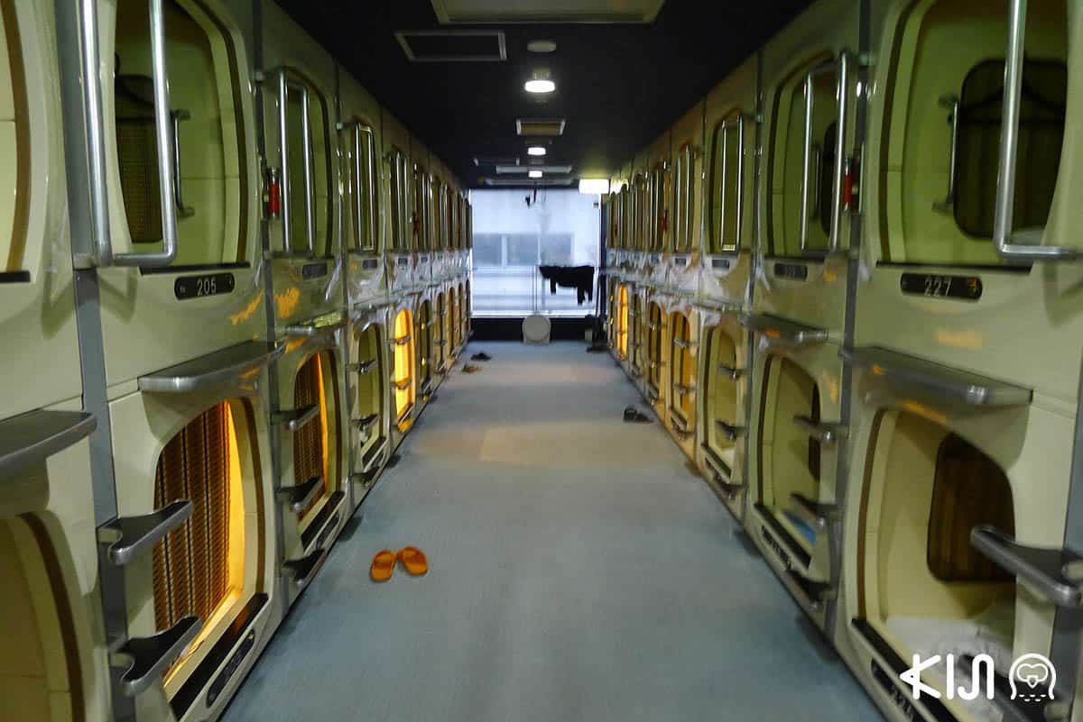 หลังกินเสร็จบางคนตกรถไฟ (รถไฟรอบสุดท้ายประมาณเที่ยงคืน) หรือเมาหนักจนกลับไม่ไหว ก็เลือกไปนอนโรงแรมแคปซูลได้ หลายแห่งเปิด 24 ชม. โรงแรมแคปซูลส่วนใหญ่ก็มักจะตั้งอยู่ในย่านธุรกิจ ใกล้สถานีรถไฟ และแหล่งที่ผู้คนเยอะ