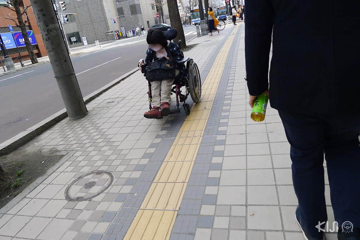 ไม่ได้สบายใจเฉพาะคนแข็งแรงทั่วไป แต่ผู้พิการ อาทิ พิการทางสายตาหรือมีปัญหาด้านการมองเห็น (เช่น ผู้สูงวัยบางท่าน) ก็สบายใจได้ด้วย เพราะมีการสร้างผิวต่างสัมผัสสำหรับนำทางผู้พิการทางสายตา เรียกว่า “Tactile Paving” (点字ブロック- Tenji burokku) นำทางไปตามฟุตปาธ ข้ามถนน เข้าตัวตึกอาคาร ฯลฯ