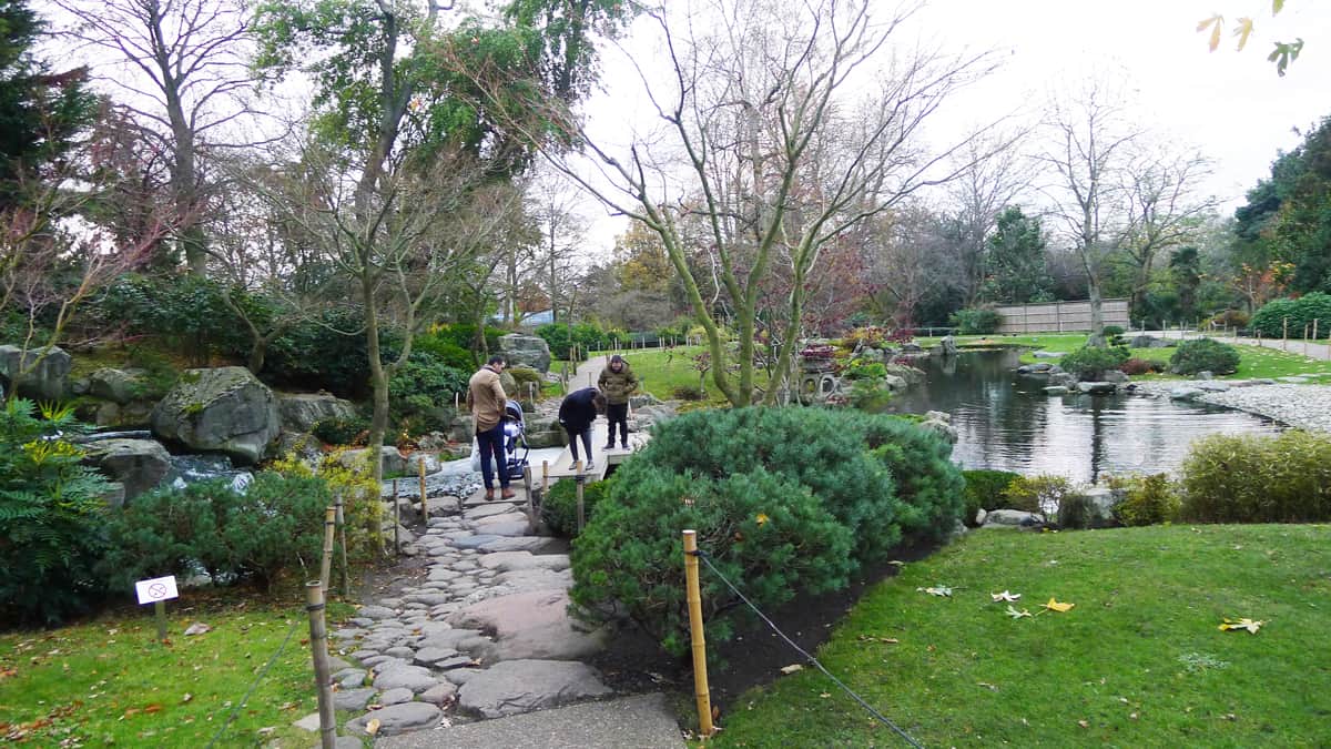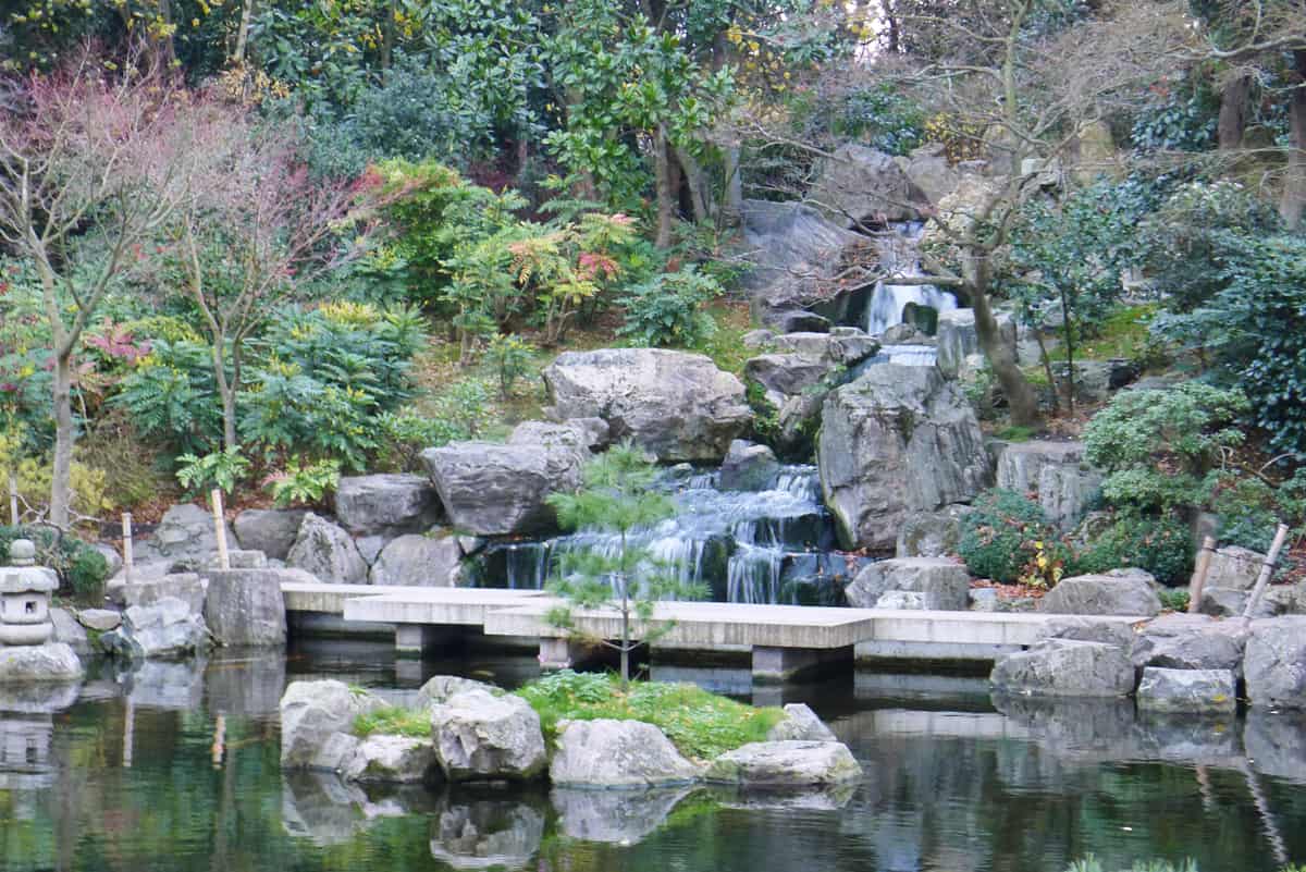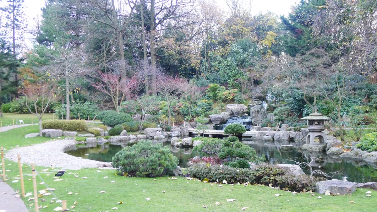 Kyoto Garden อยู่แทบจะใจกลาง Holland Park ทางเข้าตกแต่งแบบญี่ปุ่นบอกเราว่าคุณได้มาถึงแล้ว เมื่อเข้าไปถึงสิ่งแรกที่สัมผัสได้คือ “ความสงบ” ทางเดินเล็กๆ นำพาผู้เยี่ยมชมผ่านไปรอบๆ บึงบ่อน้ำที่มีปลาคาร์ปสีส้มตัวใหญ่ว่ายไปว่ายมา วนอ้อมไปเจอกับทางเดินหินที่มีน้ำตกเล็กๆ 3 ชั้นไหลลงมาพร้อมทางเดินตัดบ่อน้ำให้ข้าม บัดนี้คุณจะถูกแวดล้อมไปด้วยบึบ่อน้ำราวกับอยู่ใจกลางสวน