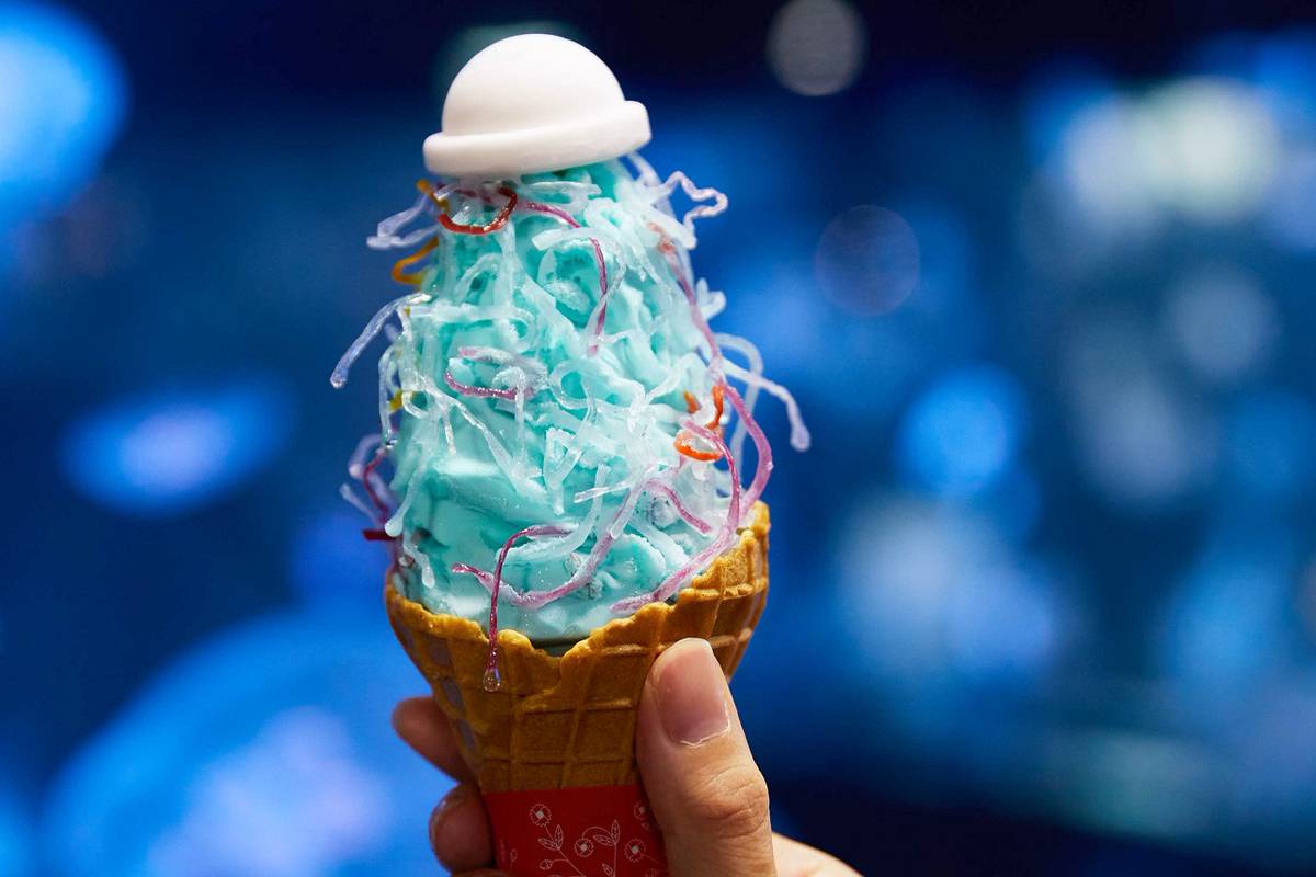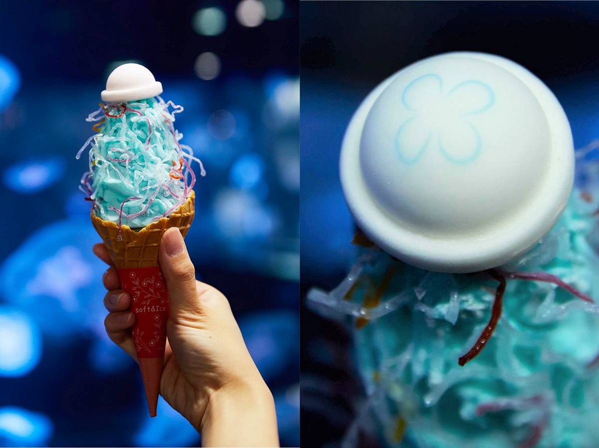 นอกจากนี้ยังมีเมนูเย็นสดชื่น “บลูซอฟต์แมงกะพรุน” ไอศกรีมดับร้อนหน้าตาน่ารักคล้ายแมงกะพรุน เป็นซอฟต์ครีมรามุเนะ (Ramune) หวานสดชื่น โรยหน้าด้วยเส้นแก้วสาหร่ายทะเลกรุบกรอบหลากสีสันให้เป็นเหมือนหนวดแมงกะพรุน และปิดท้ายด้วยมาร์ชเมลโล่แมงกะพรุนอันจิ๋วสุดน่ารักด้านบนตัวไอศกรีม