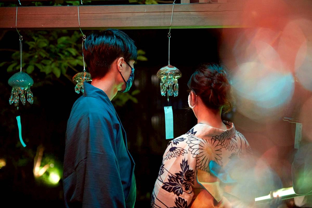 ปิดท้ายด้วยช่วงเวลาสุดโรแมนติกที่จะจัดขึ้นในช่วงหลัง 5 โมงเย็น พอฟ้าเริ่มมืดบริเวณ Kyoto no Satoyama พื้นที่สีเขียวที่ให้ฟีลเหมือนอยู่ในชนบทก็จะเปิดแสงไฟสาดส่องไปตามกระดิ่งลมรูปแมงกะพรุน ให้ทุกคนได้เดินเล่นท่ามกลางสายลมยามค่ำคืน พร้อมเพลิดเพลินไปกับแสงสีเสียงของกระดิ่งลมที่แตกต่างไปจากช่วงเช้าอย่างสิ้นเชิง