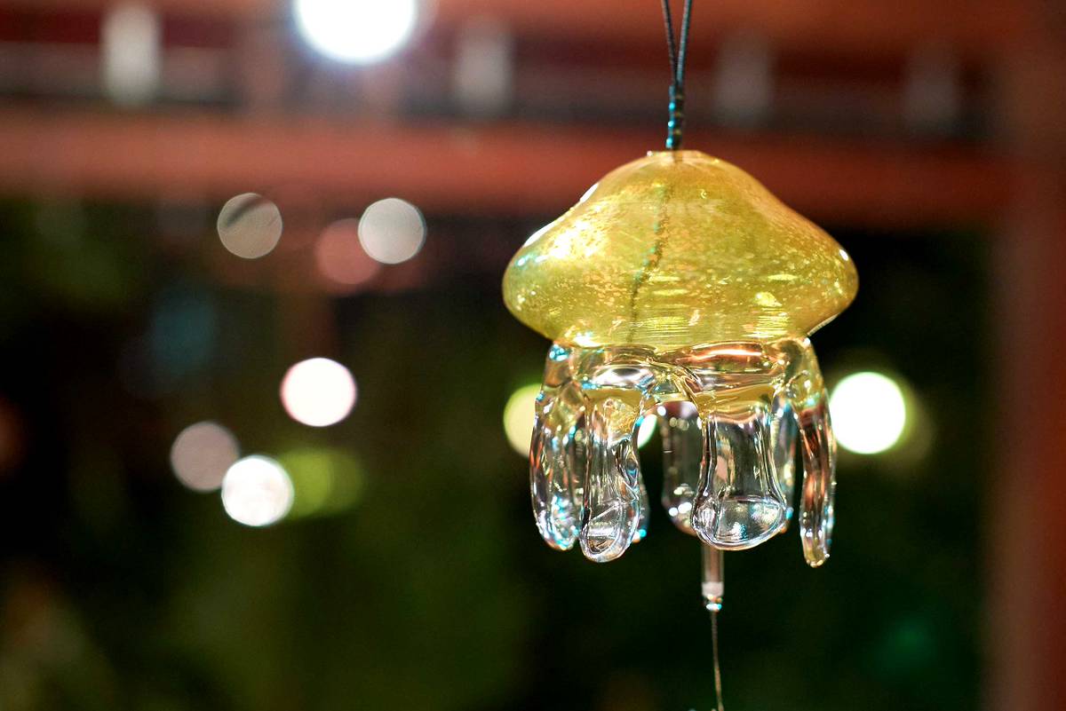 กระดิ่งลมรูปแมงกะพรุนนั้นเป็นผลงานที่ถูกสร้างขึ้นอย่างพิถีพิถันทีละชิ้นจากร้าน TAKU GLASS ผู้เชี่ยวชาญด้านเครื่องแก้ว ร้านชื่อดังหน้าศาลเจ้าอิจิโนะมิยะยาฮิโกะ (Ichinomiya Yahiko Shrine) จากจังหวัดนีงาตะ ภายใต้คำแนะนำของเจ้าหน้าที่ที่ดูแลแมงกะพรุน