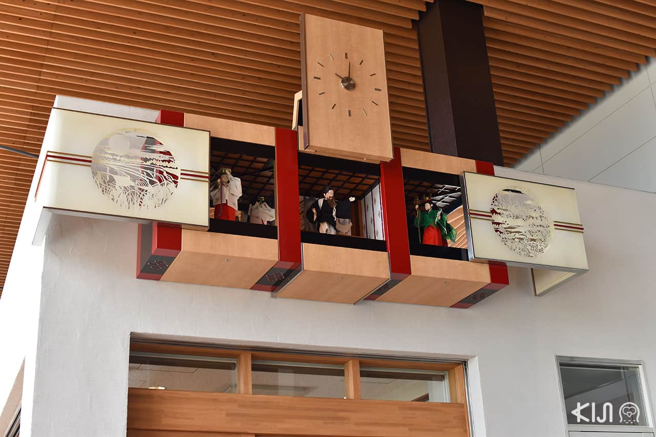 ตามเส้นทางของ Oykot รถไฟจะจอดพักที่สถานี Iiyama ประมาณ 10 นาที เพื่อให้เราได้แวะร้าน Panorama Terrace เพื่อชมความพิเศษของนาฬิกากุ๊กกูที่ไม่เหมือนกับที่ไหน เพราะในทุกๆ ชั่วโมงนาฬิกาที่เคยบอกเวลาก็จะค่อยๆ เลื่อนฉากเปิดการแสดงให้ผู้ชมอย่างเราได้เห็นท่วงท่าต่างๆ ของตุ๊กตาญี่ปุ่นโบราณกันแบบเพลินๆ นอกจากนี้ในขบวนรถไฟจะมีพ่อค้าแม่ค้าขึ้นมาขายบานาน่าโบ๊ท สปอนจ์เค้กเนื้อนุ่มสอดไส้กล้วยทั้งลูกและครีม สินค้าขายดีของ Iiyama ที่ขอแอบบอกว่าหมดไวมากๆ เลยล่ะ