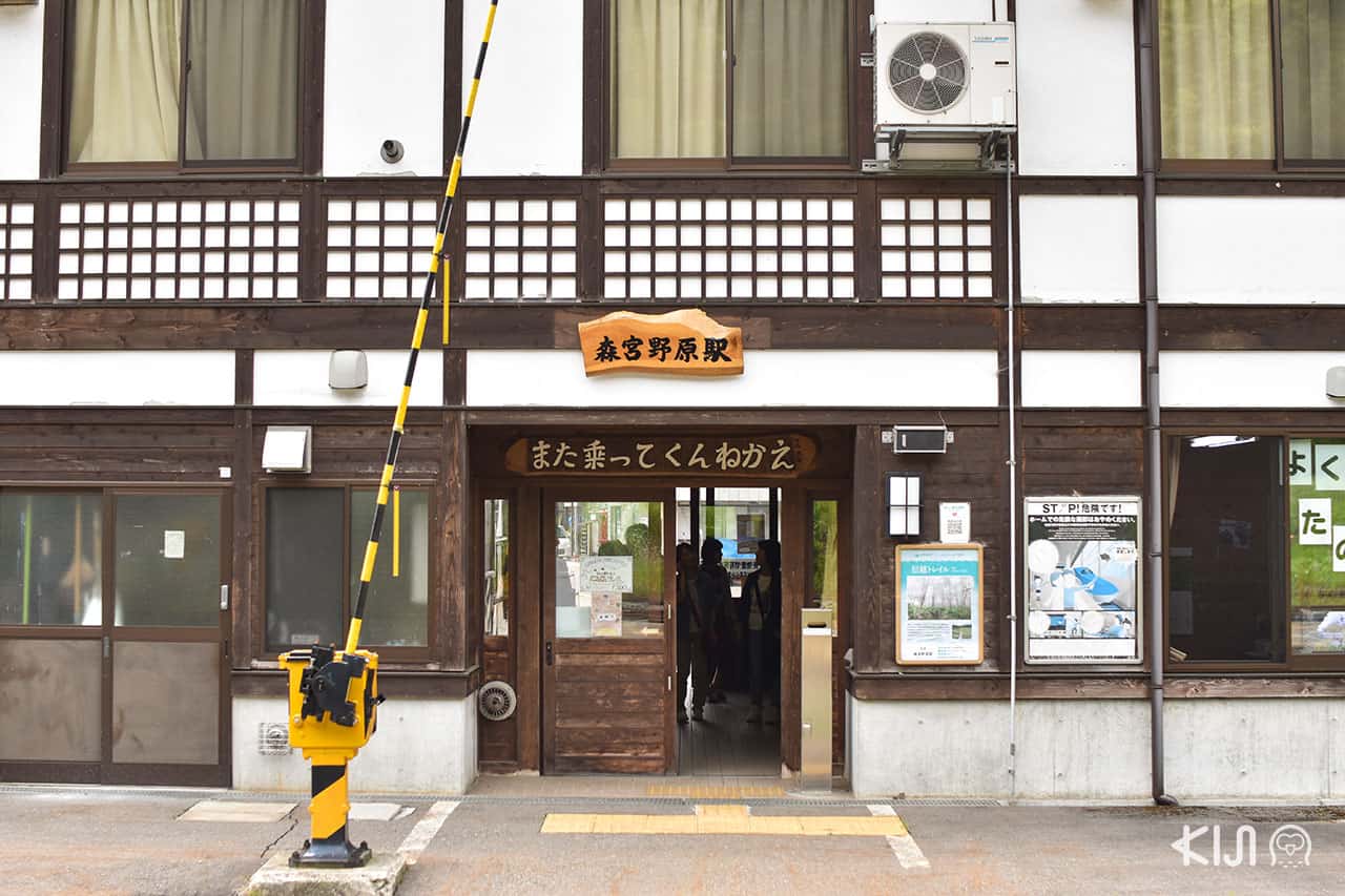 ตัวขบวนยังหยุดจอดที่สถานี Morimiyanohara ที่ในอดีต (ค.ศ. 1945) หิมะเกิดตกหนักจนท่วมสูงกว่า 7 เมตร และที่นี่เราจะได้สวมสึเกะโบชิ (Sugeboshi) ชุดกันฝนที่ทำจากฟางถ่ายรูป ที่แต่เดิมตอนยังไม่มีร่ม ชาวบ้านก็ได้สวมสิ่งนี้เพื่อกันฝนนั่นเอง