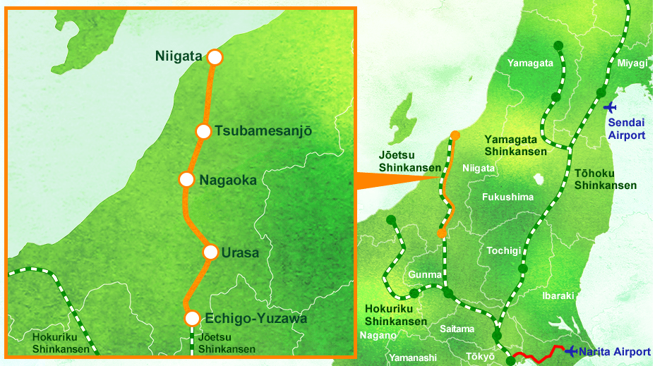 Route : Echigo-Yuzawa ถึง Niigata สาย Joetsu Shinkansen Line