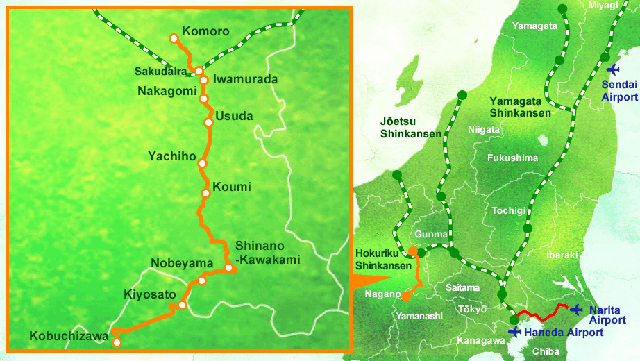 | Genbi Shinkansen | สามารถขึ้นได้ที่สถานี Sakudaira |
