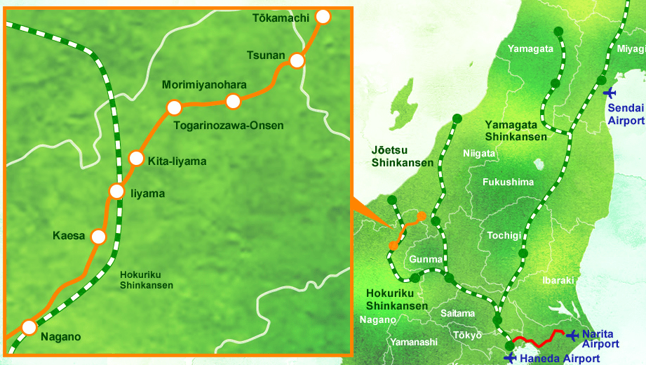 Route : Nagano ถึง Tokamachi สาย Iiyama Line