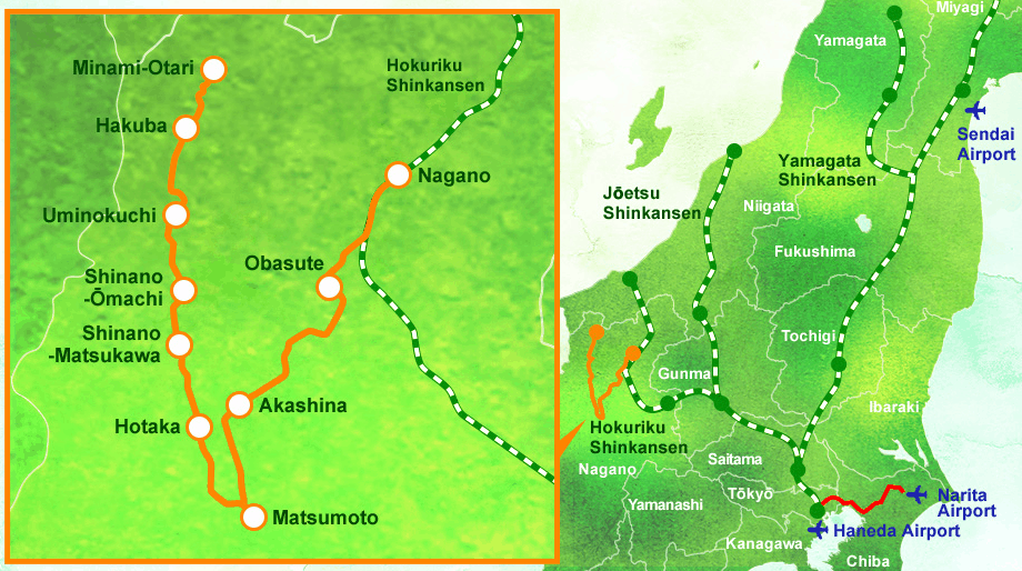 Accessible From : สถานี Nagano (เดินทาง 90 นาทีโดยชินคันเซ็นจากโตเกียว), สถานี Matsumoto เดินทาง 2 ชั่วโมงโดยชินคันเซ็นจากชินจูกุ)