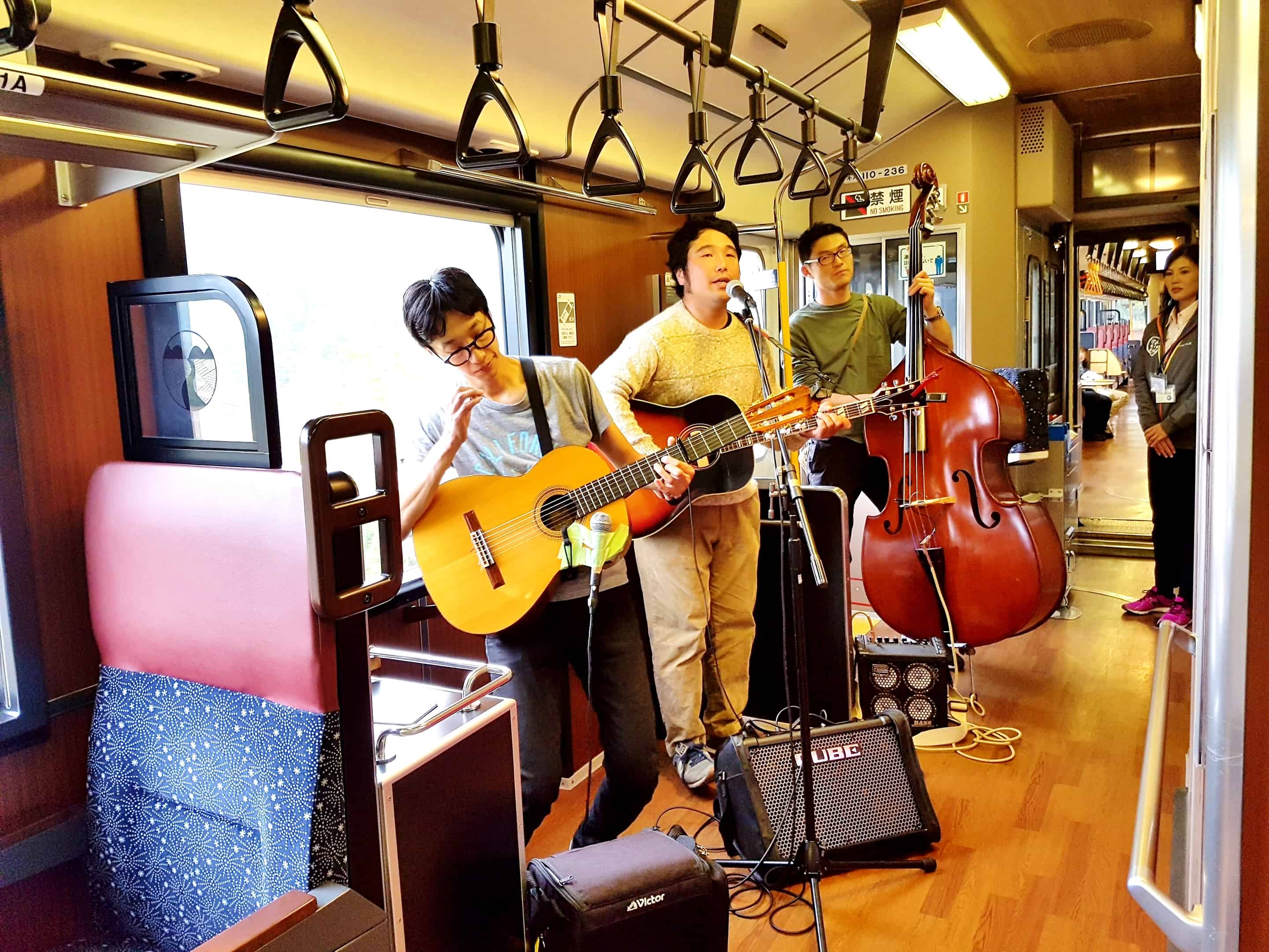 ด้วยความที่เส้นทางของ Oykot นั้นท่องไปตามจังหวัดนากาโน่ ที่เรียกได้ว่าเป็นถิ่นกำเนิดของนักร้องและนักแต่งเพลงแนวโฟล์คซองชื่อดังหลายราย กิจกรรมในรถไฟที่ขาดไม่ได้คือการนั่งชมวิวนาข้าวพลางฟังเพลงโฟล์คซองสบายๆ จากนักร้องอาสาสมัครชาวญี่ปุ่น