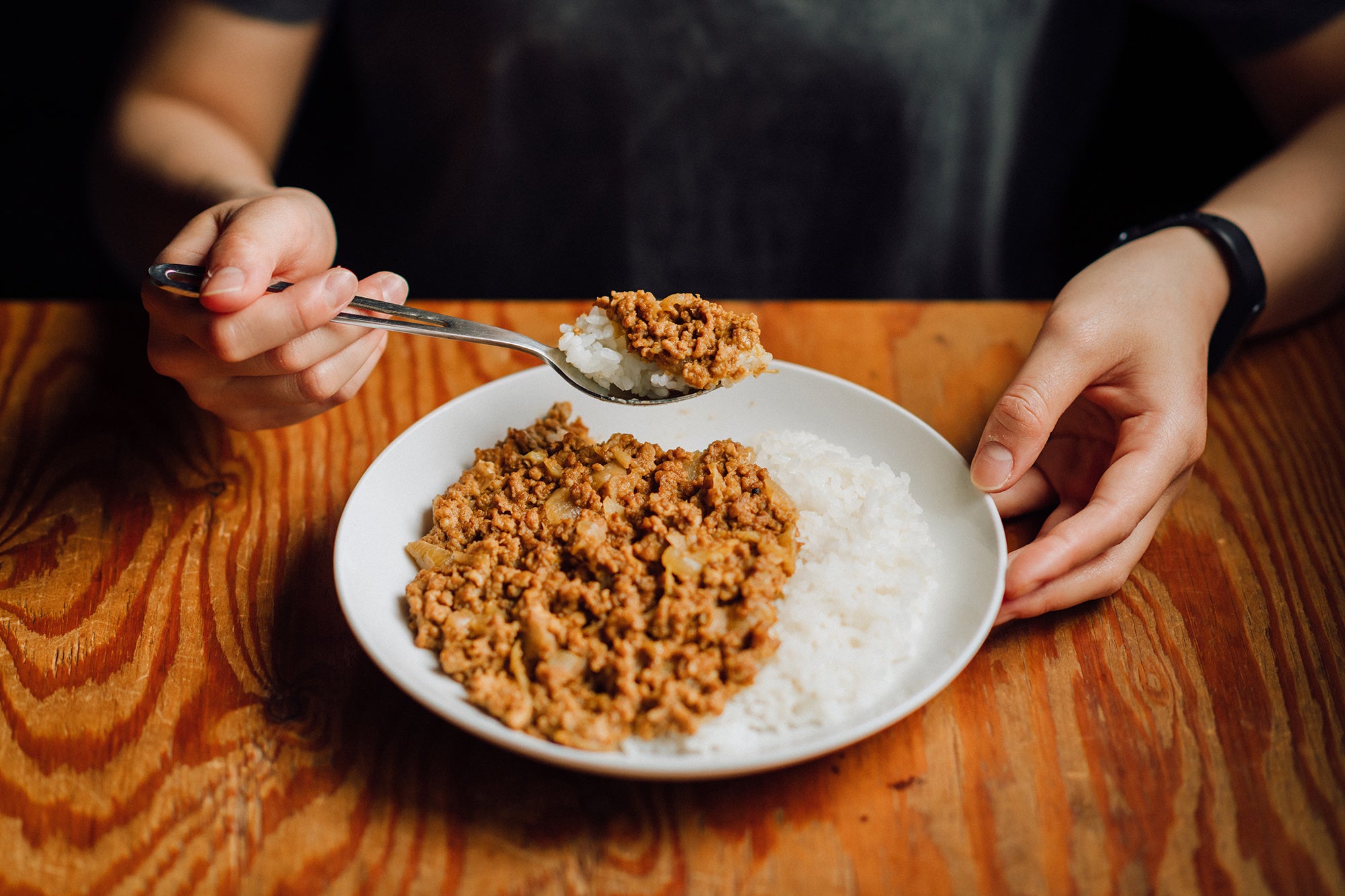 ต่อด้วย Nibo Keema Curry โดยเมนูนี้จะเป็นแกงกะหรี่ผัดแห้ง ที่ใช้เนื้อไก่บดผัดเข้ากับเครื่องเทศ และหัวหอม ทำให้มีรสชาติที่หวานเล็กน้อย