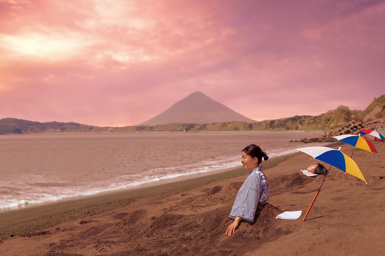 ปิดท้ายด้วยประสบการณ์ อบทรายร้อน ลำดับแรกใส่ชุดยูกาตะแล้วลงไปนอนในหลุมทราย หลังจากนั้นกลบตัวด้วยทรายร้อนนาน 10-15 นาที เสร็จแล้วจึงลงไปแช่ตัวในบ่อน้ำแร่ออนเซ็นปิดท้าย การอบทรายร้อนมีสรรพคุณช่วยในการรักษาโรคผิวหนัง โรคไขข้ออักเสบ ทำให้ระบบหมุนเวียนโลหิตดีขึ้น เนื่องจากความร้อนจากทรายจะช่วยให้หลอดเลือดขยายตัว ร่างกายจะรู้สึกสดชื่นและผ่อนคลาย อีกทั้งของเสียภายในร่างกายก็จะถูกขับออกมาพร้อมกับเหงื่อ