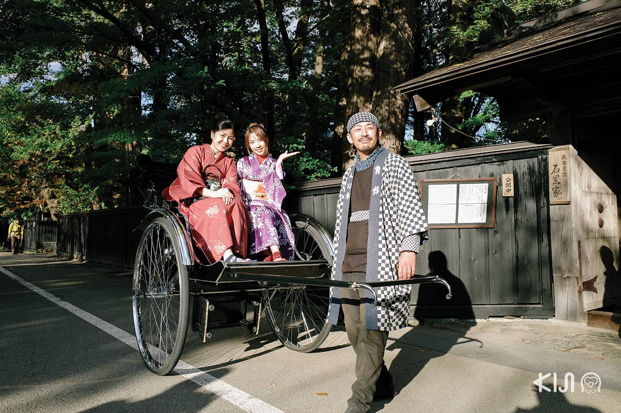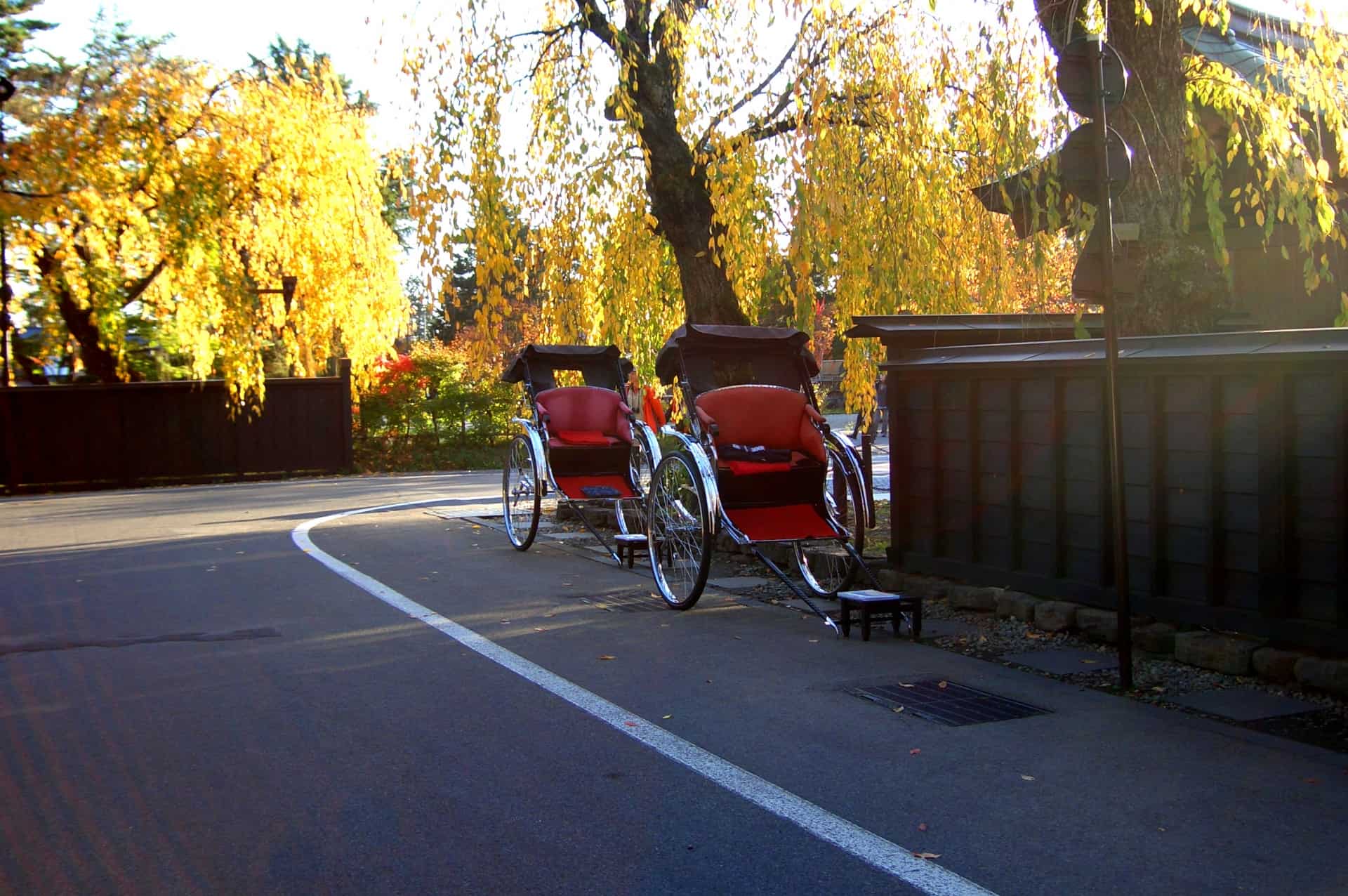 ชุดพร้อม คนก็พร้อม เพื่อให้เข้ากับบรรยากาศขึ้นอีกขอให้ลองนั่งรถลากโบราณชมบรรยากาศหมู่บ้านซามูไร ทางบริษัทรถลากจะให้เราเลือกระยะเวลาที่ต้องการนั่ง 15 30 หรือ 60 นาที ราคาก็จะแตกต่างกันไป เนื่องจากคาคุโนะดาเตะเป็นย่านเล็กๆ รถลากเลยไม่ได้มีจำนวนมากนักจึงอาจหายากบ้างในช่วงฤดูกาลท่องเที่ยวยอดฮิตอย่างฤดูใบไม้ผลิและใบไม้ร่วง ในคาคุโนะดาเตะมีรถลาก 3 บริษัทที่ให้บริการ เราสามารถจองผ่านทั้งโทรศัพท์ (ภาษาญี่ปุ่น) และจองหน้างานได้ที่บริเวณพิพิธภัณฑ์เดงโชคัง (Denshokan Museum)