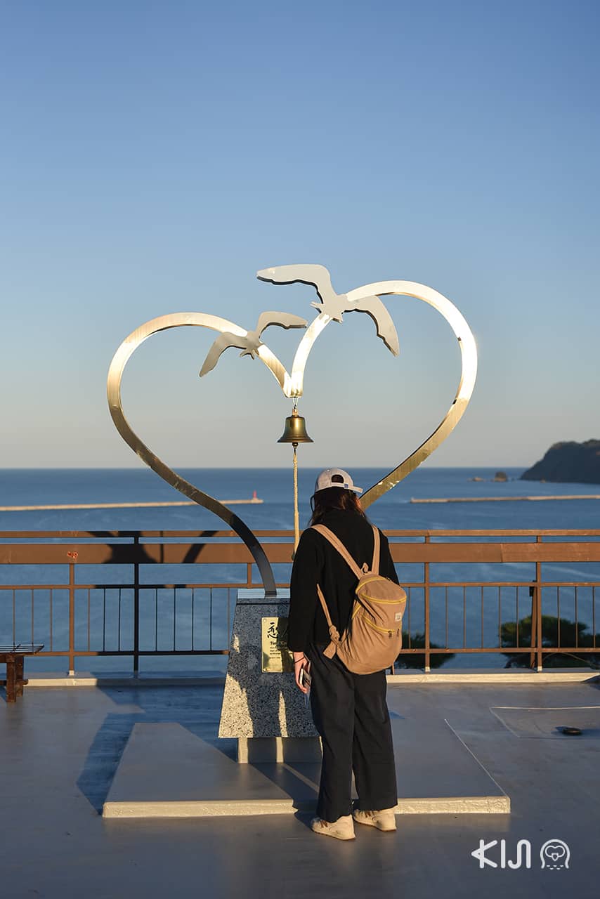 เจ้าแม่กวนอิมใหญ่สูง 48.5 เมตร ก่อตั้งขึ้นตั้งแต่ปี ค.ศ. 1970 ประดิษฐานอยู่ริมชายฝั่งซันริกุ ภายในตัวเจ้าแม่กวนอิมถูกออกแบบให้สามารถเดินขึ้นไปได้ถึง 12 ชั้น แต่ละชั้นมีรูปปั้นพระพุทธรูป 33 องค์ และเทพแห่งความโชคดี 7 องค์ นอกจากจะมีหน้าที่หลักในการเป็นสถานที่อธิษฐานขอพรแล้ว ด้านบนนี้ยังเป็นจุดชมวิวทะเลงามๆ แบบพาโนรามากว้างสุดลูกหูลูกตา ที่น่าสนใจคือที่นี่ได้รับการจดทะเบียนเป็นทางการว่า “Lover’s Sanctuary” สัญลักษณ์แห่งความรักที่มีกว่า 140 แห่งทั่วญี่ปุ่น เป็นสถานที่โรแมนติกที่เชื่อกันว่าจะนำโชคลาภมาสู่คู่รักหรือคนโสด