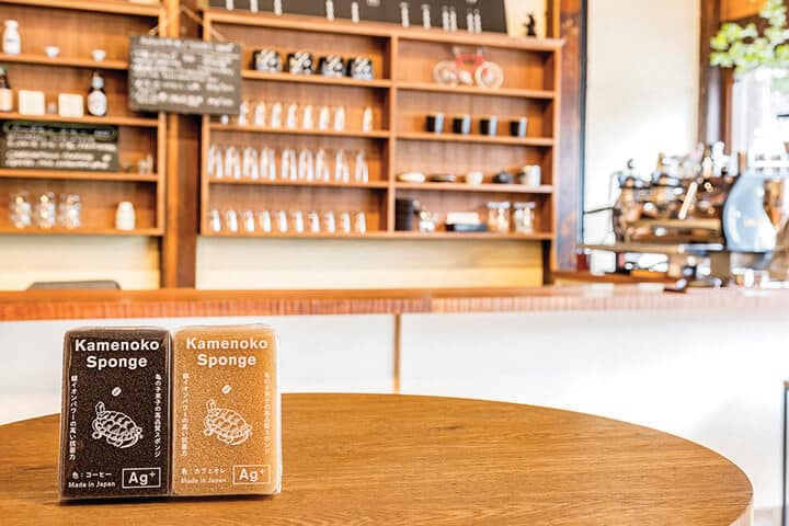 จากที่ขายเฉพาะแปรงจากเส้นใยธรรมชาติมานานนมในปี ค.ศ. 2015 แบรนด์ Kamenoko ก็ออกผลิตภัณฑ์เพื่อรองรับการใช้งานของคุณแม่บ้านยุคใหม่ นั่นคือฟองน้ำทำจากโพลียูรีเทน และตั้งชื่อสินค้ากลุ่มนี้ว่า Kamenoko Sponge โดยมอบหมายให้นักออกแบบรุ่นใหม่ไฟแรงชื่อ Kikuchi Atsuki เป็นผู้ออกแบบบรรจุภัณฑ์ ซึ่งตัวหนังสือและโลโก้พิมพ์สีทึบบนพลาสติกใส เมื่อผนวกเข้ากับฟองน้ำสีสดด้านในทำให้สินค้าดูเตะตา เป็นที่จดจำได้อย่างรวดเร็ว และได้รับรางวัลชนะเลิศ Japan Package Design Grand Prize ประจำปี 2017 ที่ผ่านมา Kamenoko Sponge ขึ้นแท่นงานออกแบบน่าประทับใจ และอยู่ในลิสต์สินค้าที่น่าซื้อเป็นของฝากจากโตเกียวเพราะทั้งเก๋ไก๋ ชิ้นเล็ก ราคาไม่แพง แถมยังน้ำหนักเบา นอกจากนี้ Kamenoko Sponge ยังคอยออกฟองน้ำสีใหม่ๆ ตามฤดูกาลมายั่วใจตลอดๆ เช่น ฤดูใบไม้ผลิ ทำฟองน้ำสีขาวออกมาคู่กับสีชมพูที่ชวนให้นึกถึงซากุระผลิบาน หรือช่วงฤดูใบไม้ร่วงที่ผ่านมาก็ออกคู่สีใหม่สำหรับคอกาแฟ เป็นสีกาแฟดำกับสีกาแฟนมสวยแปลกตาไม่ซ้ำใคร ก่อนกลับจากโตเกียวฉันเดินเข้าร้านขายของที่ระลึกประเภทงานดีไซน์ ก็ยังพบ Kamenoko Sponge สีเทาสวยเท่วางขายในร้านด้วย