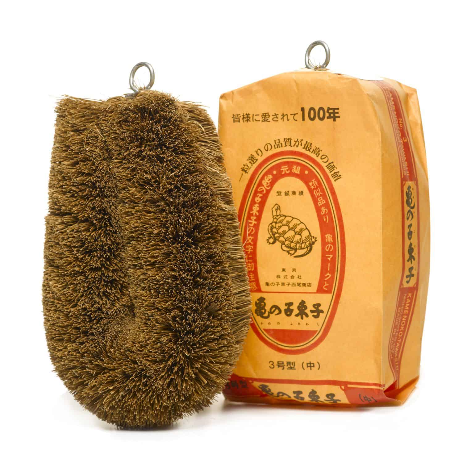 ฉันกลับมาหาข้อมูลของฟองน้ำเต่า ก็พบว่าไม่ธรรมดาจริงๆ ชื่อแบรนด์คือ Kamenoko Tawashi ก่อตั้งมาตั้งแต่ปี ค.ศ. 1907 คำว่า Kamenoko แปลว่าลูกเต่า ส่วน Tawashi ก็คือแปรงขัด สินค้าชนิดแรกที่บริษัทนี้นำเสนอสู่ท้องตลาด คือแปรงกาบปาล์มที่งอเป็นตัวยูคล้ายเกือกม้า ซึ่งเมื่อลอยอยู่ในกะละมังล้างจานดูคล้ายลูกเต่าตัวน้อยๆ จึงเป็นที่มาของชื่อแบรนด์ที่มีอายุยืนยาวมากว่าศตวรรษ
