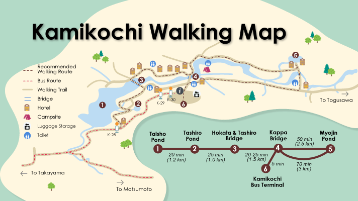 แผนที่เส้นทางเดินป่าในคามิโคจิ