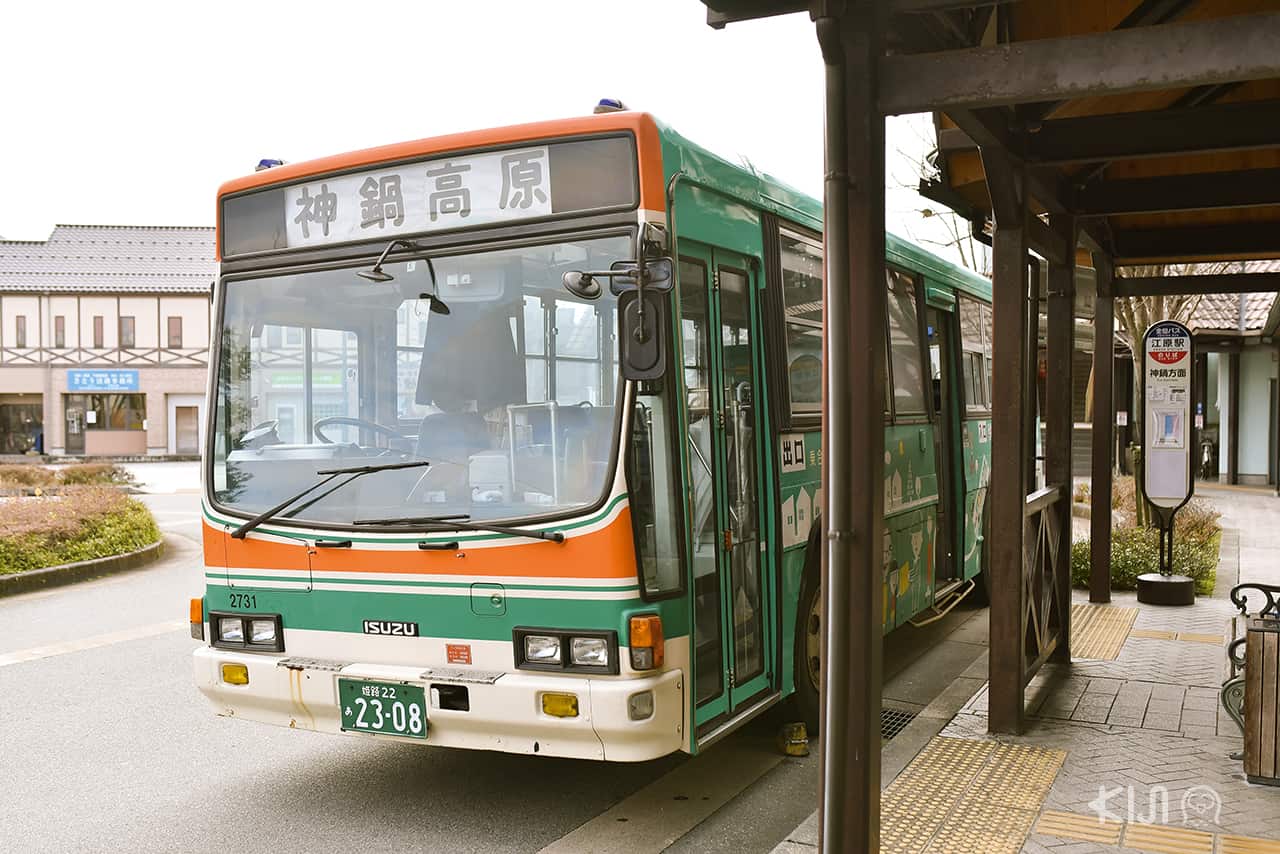 จากนั้นเดินเท้า 2-3 นาที ไปต่อรถบัสท้องถิ่นที่ป้าย Ebara เพื่อมุ่งหน้าตรงไปยังคันนาเบะ ไฮแลนด์ (Kannabe Highlands) โดยต้องซื้อตั๋วโดยสารเพิ่มภายในรถบัส ราคา 200 เยนต่อคน