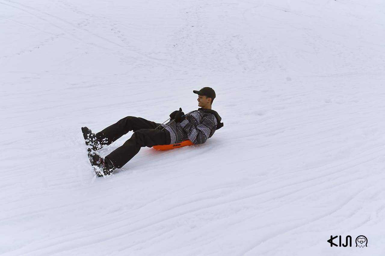 ผมนั่งกระเช้าขึ้นไปยังจุดที่จะเล่น Banana Ski บอกเลยว่าวิวระหว่างทางแม้จะถูกปกคลุมไปด้วยหิมะหนา แต่ก็สวยงามราวกับเทพนิยาย ชุดพร้อมใจพร้อมจะรออะไร Let’s go! ทันใดที่เจ้ารถสโนว์โมบิลออกตัวลาก ความสนุกก็เริ่มขึ้น พร้อมกับเสียงตะโกนบวกกับเสียงกรี๊ดของผู้โดยสารที่เต็มไปด้วยความสนุกและความตื่นเต้น เป็นการเล่น Banana Ski ที่สนุกมากๆ ถึงแม้ว่าหน้าจะชาเพราะความเย็นจากหิมะที่ตกลงมาก็เถอะ