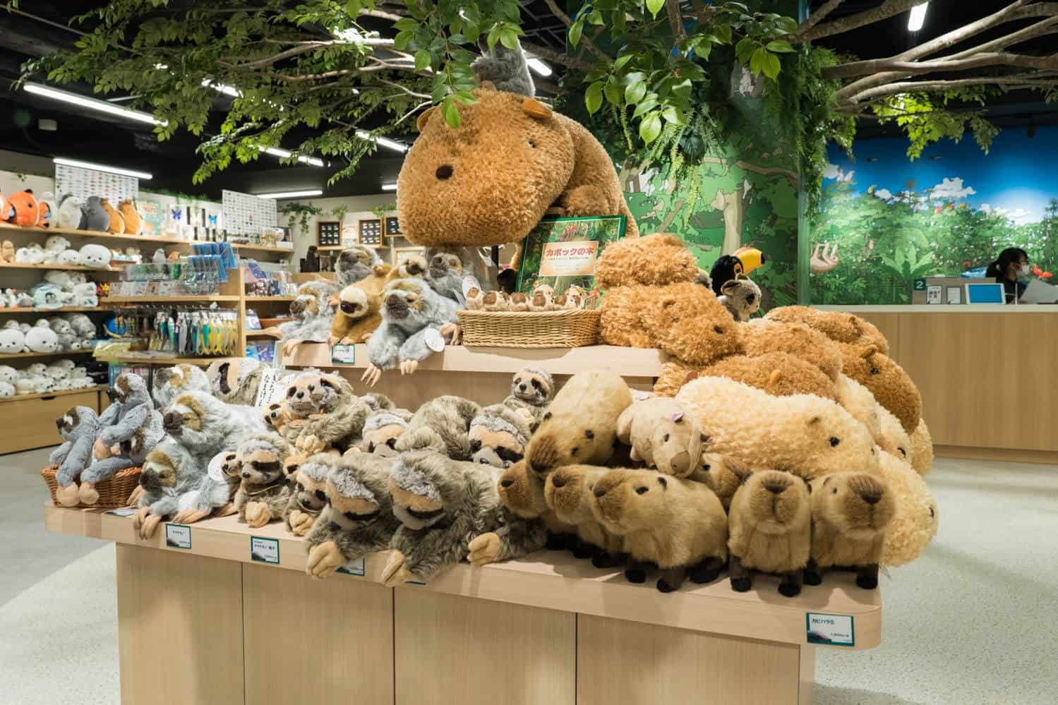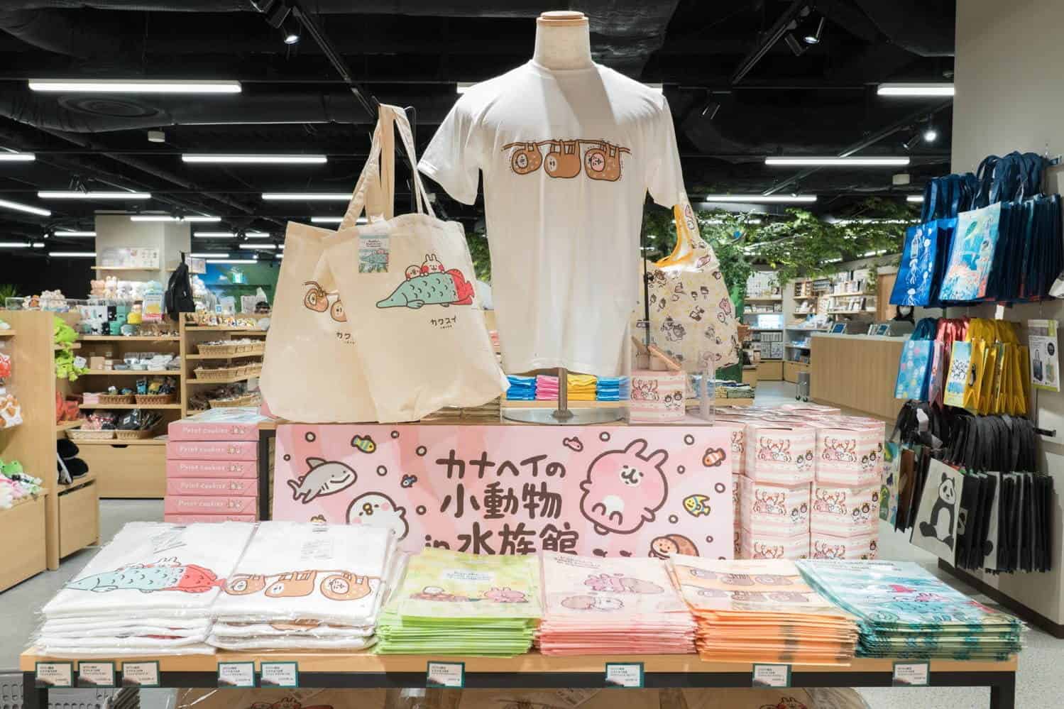 สำหรับร้านขายของที่ระลึก นอกจากสินค้าออริจินอลของทางอควาเรียมแล้ว ในช่วงเปิดใหม่ยังมีสินค้าที่ทางอควาเรียมคอลแลปร่วมกับ Kanahei (カナヘイ) ศิลปินนักวาดชาวญี่ปุ่นผู้ให้กำเนิดสติกเกอร์ไลน์ยอดฮิตอย่าง Usagi & Piske ที่ครั้งนี้ก็หยิบเอาคาแรคเตอร์กระต่ายและลูกเจี๊ยบเเสนมาร่วมเฟรมกับบรรดาสัตว์ต่างๆ ด้วยลายเส้นแสนน่ารักที่เราคุ้นเคย