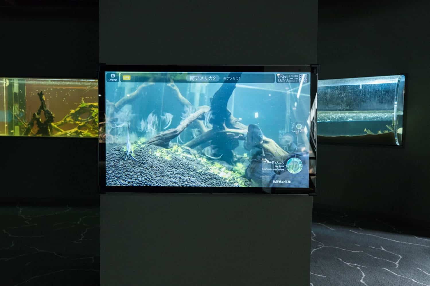 คาวาซากินับเป็นอควาเรียมแห่งแรกของโลกที่ติดตั้ง LINNÉ LENS Screen โดยการใช้กล้องถ่ายใต้น้ำและใช้เทคโนโลยี LINNÉ LENS สารานุกรม AI เกี่ยวกับสิ่งมีชีวิตที่สามารถสแกนข้อมูลได้ง่ายและรวดเร็ว มาใช้ในการประมวลผลแสดงชื่อสัตว์และรายละเอียดข้อมูลทางชีววิทยาของสิ่งมีชีวิตผ่านหน้าจอระบบสัมผัส โดยมีการติดตั้งกล้องถ่ายใต้น้ำทั้งหมด 8 ตัว และหน้าจอระบบสัมผัส 11 ชุด