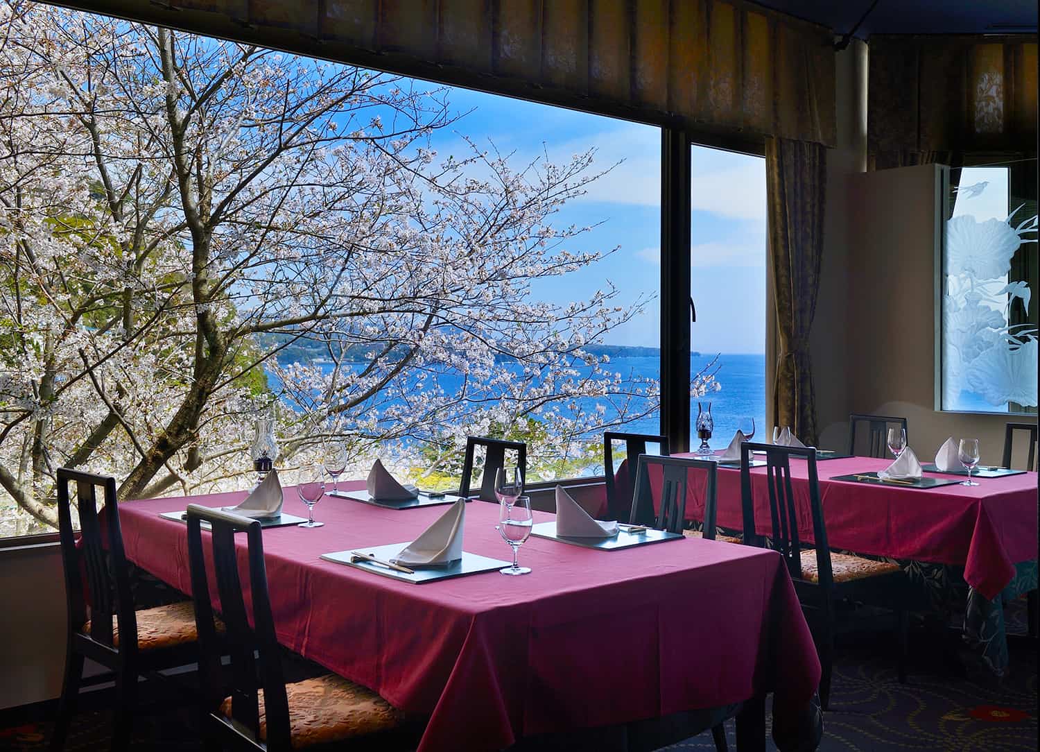 การได้ชื่นชมความงามของดอกซากุระพร้อมกันกับทะเลสีครามของคาบสมุทรอิซุนับเป็นความดีงามแบบคูณสอง แนะนำให้เผื่อเวลาหาร้านอาหารที่อยู่ใกล้กับทะเลจะได้เก็บเกี่ยวประสบการณ์ซากุระแสนประทับใจไว้ได้นานแสนนาน (ตัวอย่างในภาพคือร้านอาหารฝรั่งเศส FOUR SEASONS)