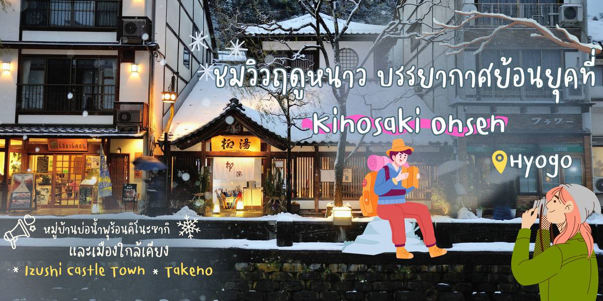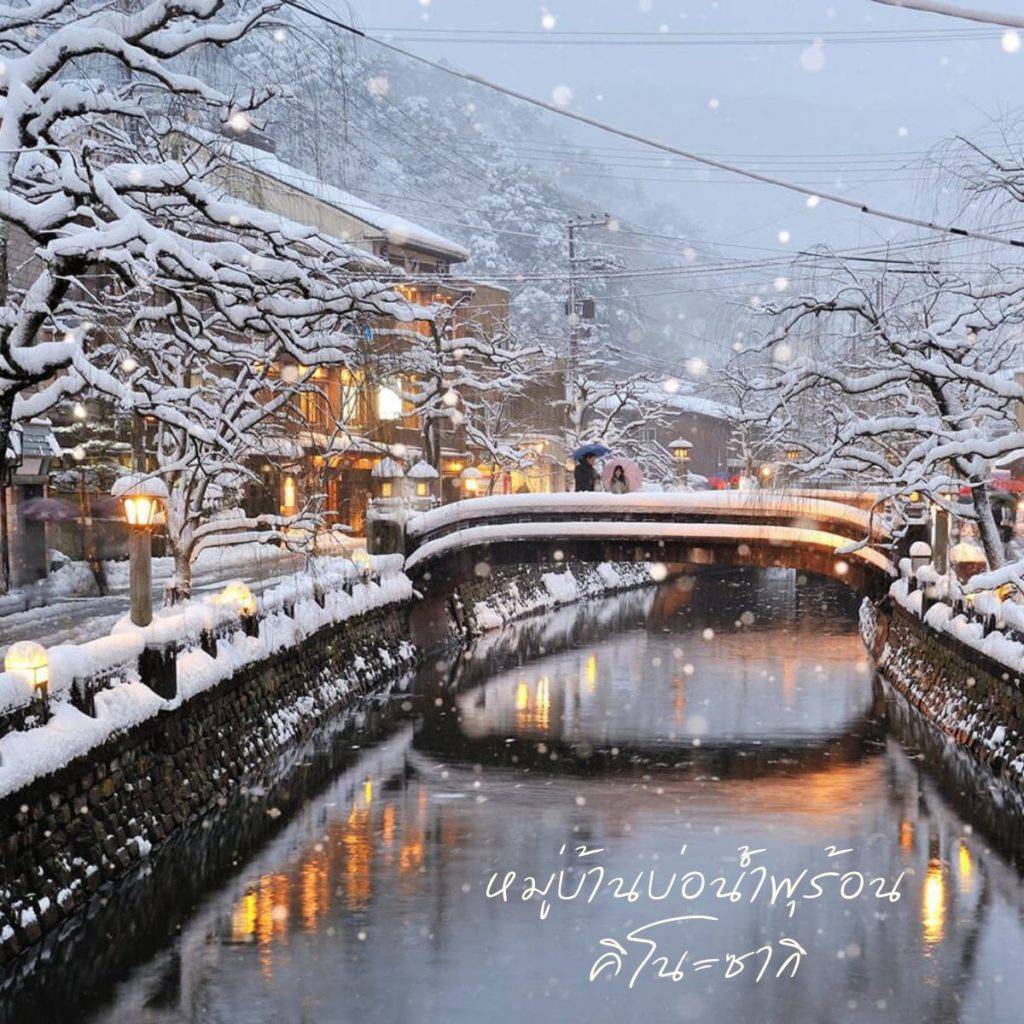 คิโนะซากิออนเซ็น (Kinosaki Onsen) อยู่ทางตอนเหนือของจังหวัดเฮียวโงะ ห่างจากโอซาก้าและเกียวโตแบบที่ใช้เวลาเดินทางประมาณ 2 ชั่วโมงกว่าๆ เท่านั้น!ซึ่งทุกคนสามารถเพลิดเพลินไปกับบรรยากาศของเมืองคิโนะซากิออนเซ็นได้ทั้ง 4 ฤดู แต่หากใครที่ชื่นชอบหิมะเป็นพิเศษ ขอบอกเลยว่าจุดชมหิมะที่นี่ก็โดดเด่นและสวยงามไม่แพ้กับที่อื่น เพราะนอกจากจะได้ชมวิวหิมะสวยๆ ในเมืองบ่อน้ำพุร้อนแล้ว ที่นี่ก็ยังมีจุดชมวิวอื่นๆ อีกมากมาย ณ บริเวณรอบๆ เมืองใกล้เคียง ที่มองเห็นวิวทิวทัศน์ของธรรมชาติท่ามกลางบรรยากาศเมืองเล็กๆ ที่แสนอบอุ่น